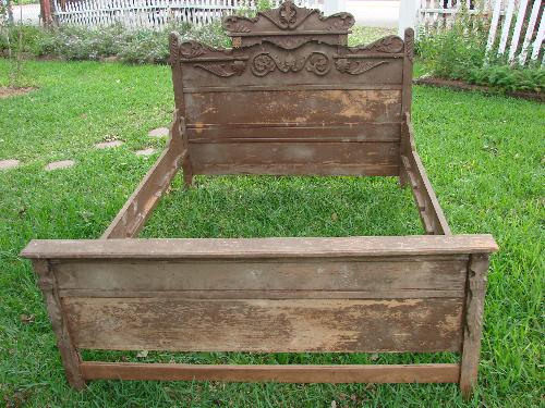 Solid wood carved bed w/wood rails from Fayetteville Texas