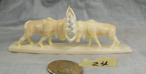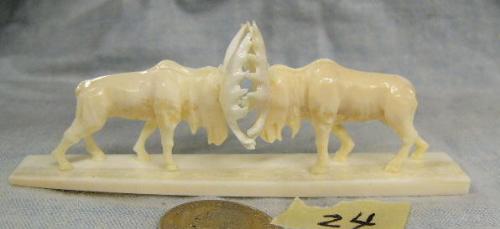Carved ivory of 2 bull moose by Don Savage- base is approx. 4-1/4" long, figure approx. 1-1/2" high