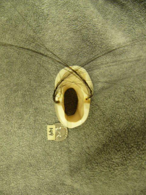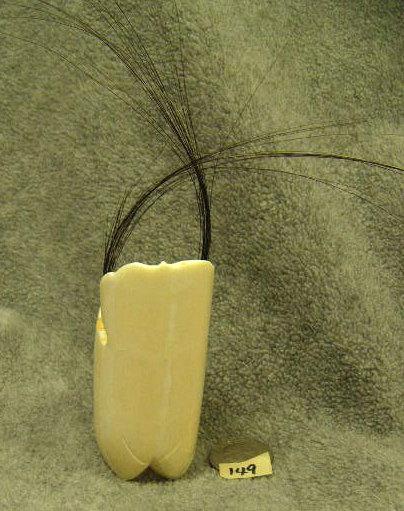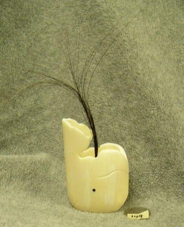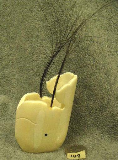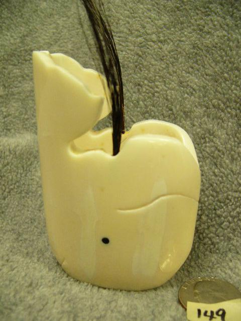 Carved ivory whale with hollow center and baleen coming out of blow hole done by Jerome Saclamana- ivory is 3-3/8" tall