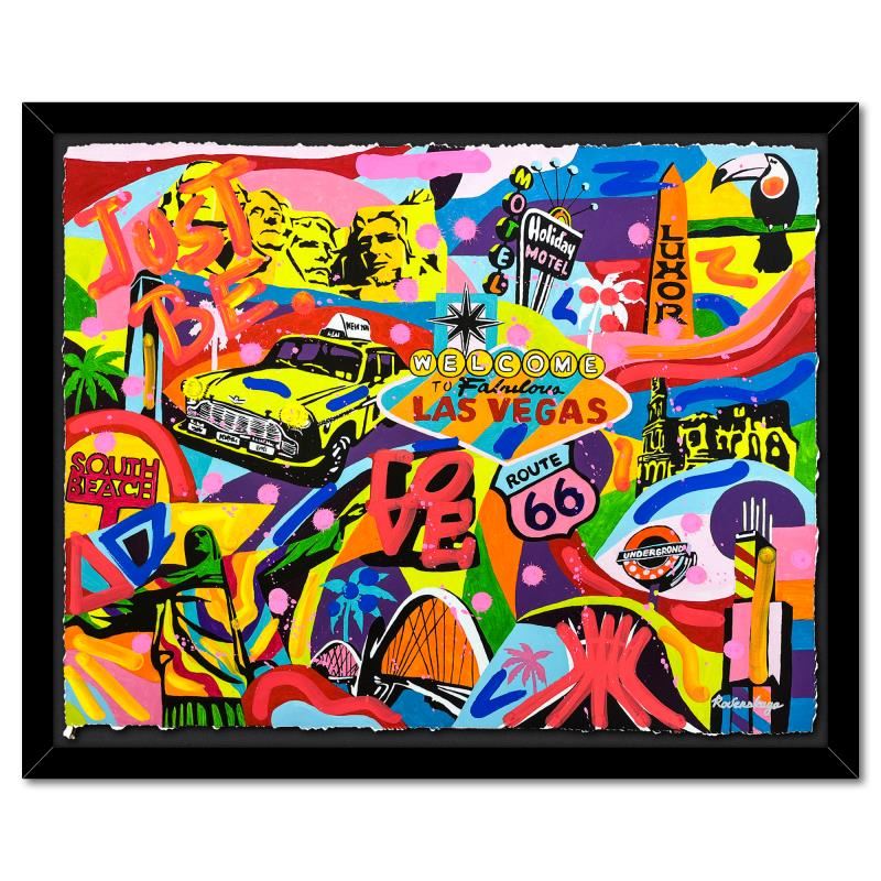 Casino Life is a one-of-a-kind mixed media on deckle edge paper by Nastya Rovenskaya; hand signed by the artist. This piece comes custom framed and includes letter of authenticity. Measures approximately 30 x 36.5 (framed), 24 x 30.5 (image).