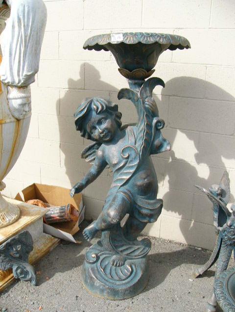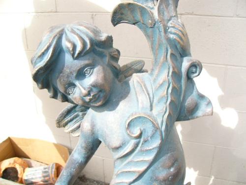 Cast iron angel holding urn 53" tall 20"wide (3)