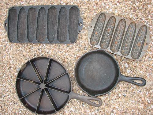Cast iron cookware, cornbread pans, small Wagner Skillet