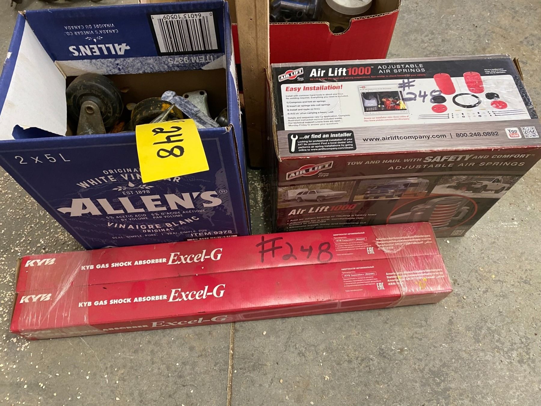 Castors; front air bags; front shocks