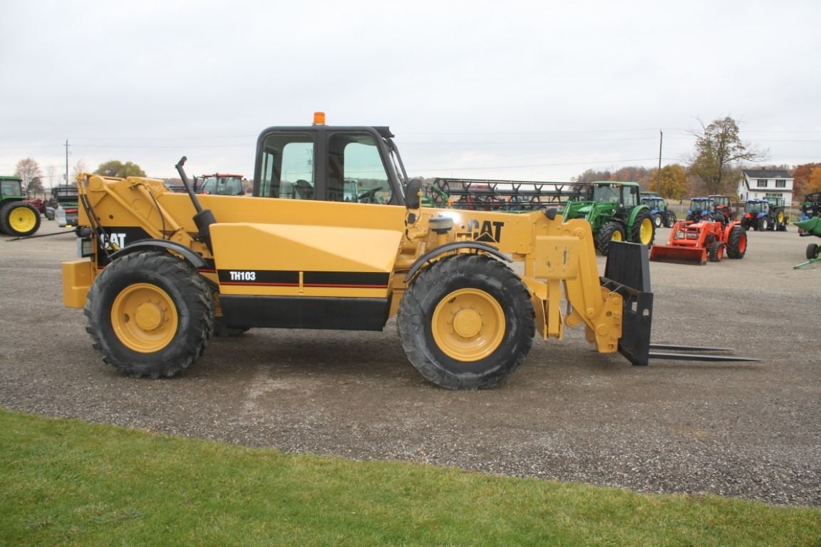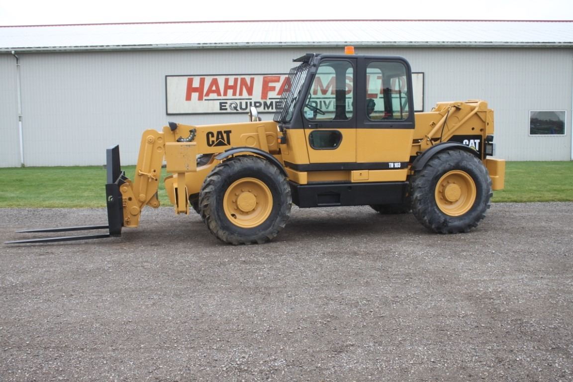 Caterpillar TH103 4wd Telehandler cab, 10,000 LB, 4 wheel steer, 3 stage mast w/ 44' lift, front sta