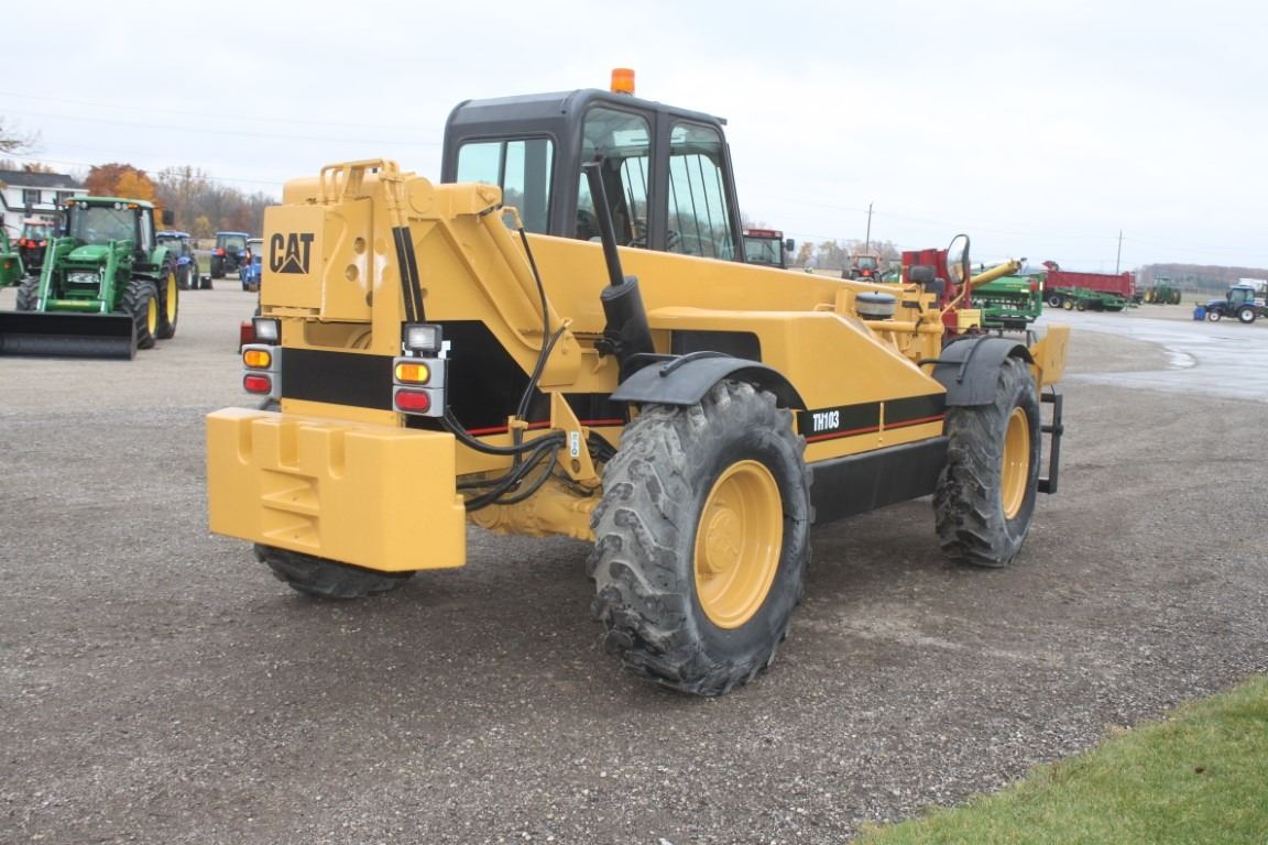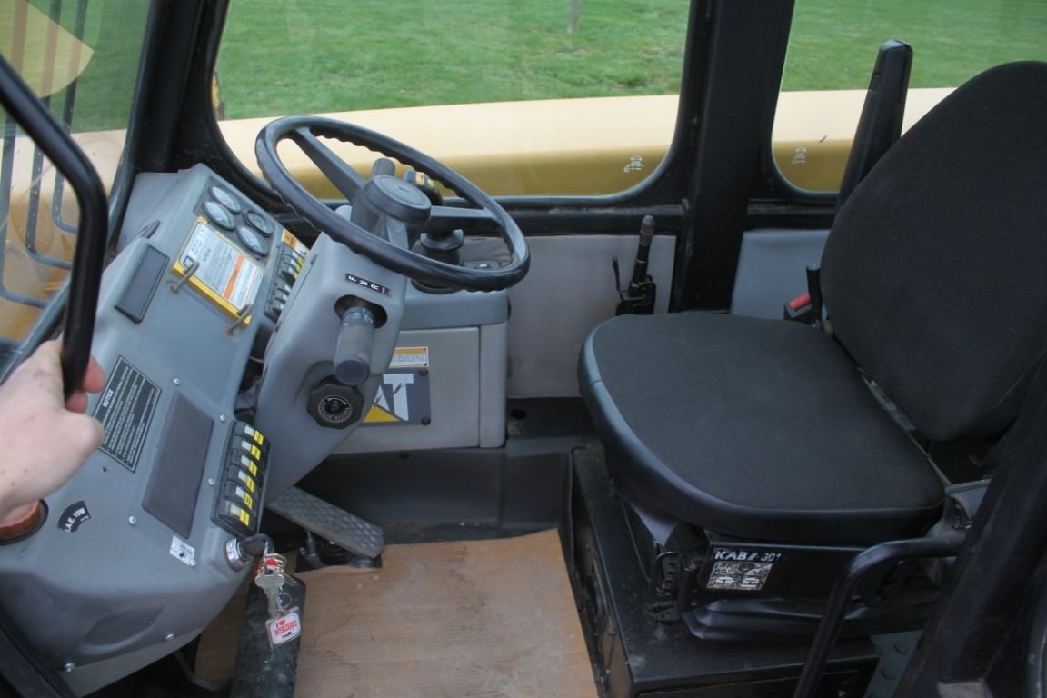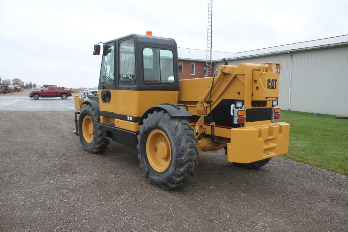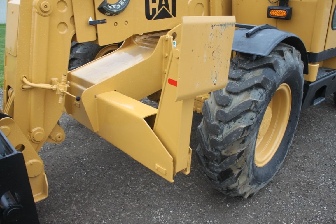 Caterpillar TH103 4wd Telehandler cab, 10,000 LB, 4 wheel steer, 3 stage mast w/ 44' lift, front stabilizers, frame leveling, quick coupler, 60" pallet forks, new tires, local unit