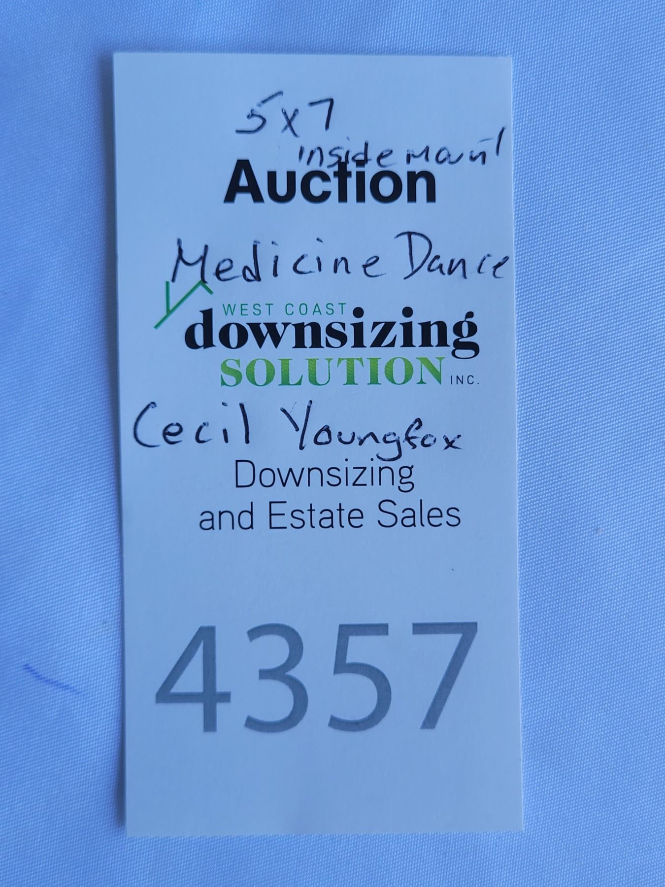 Framed. Medicine Dance 5x7 inside frame. pivkup at 9 am