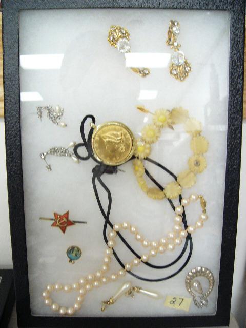 Celluloid Bracelet, Assorted Earrings, Russian Pin (74)