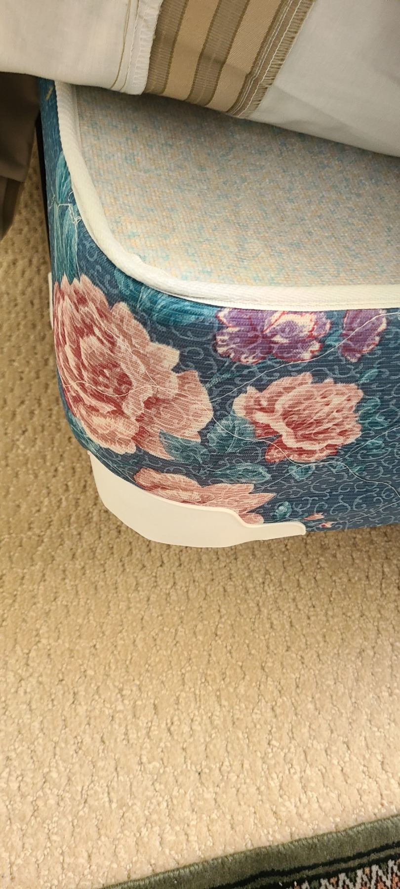 Queen size headboard in 3 sections, with two end tables. please note one end table has water marks. Pickup at 1:30 pm
