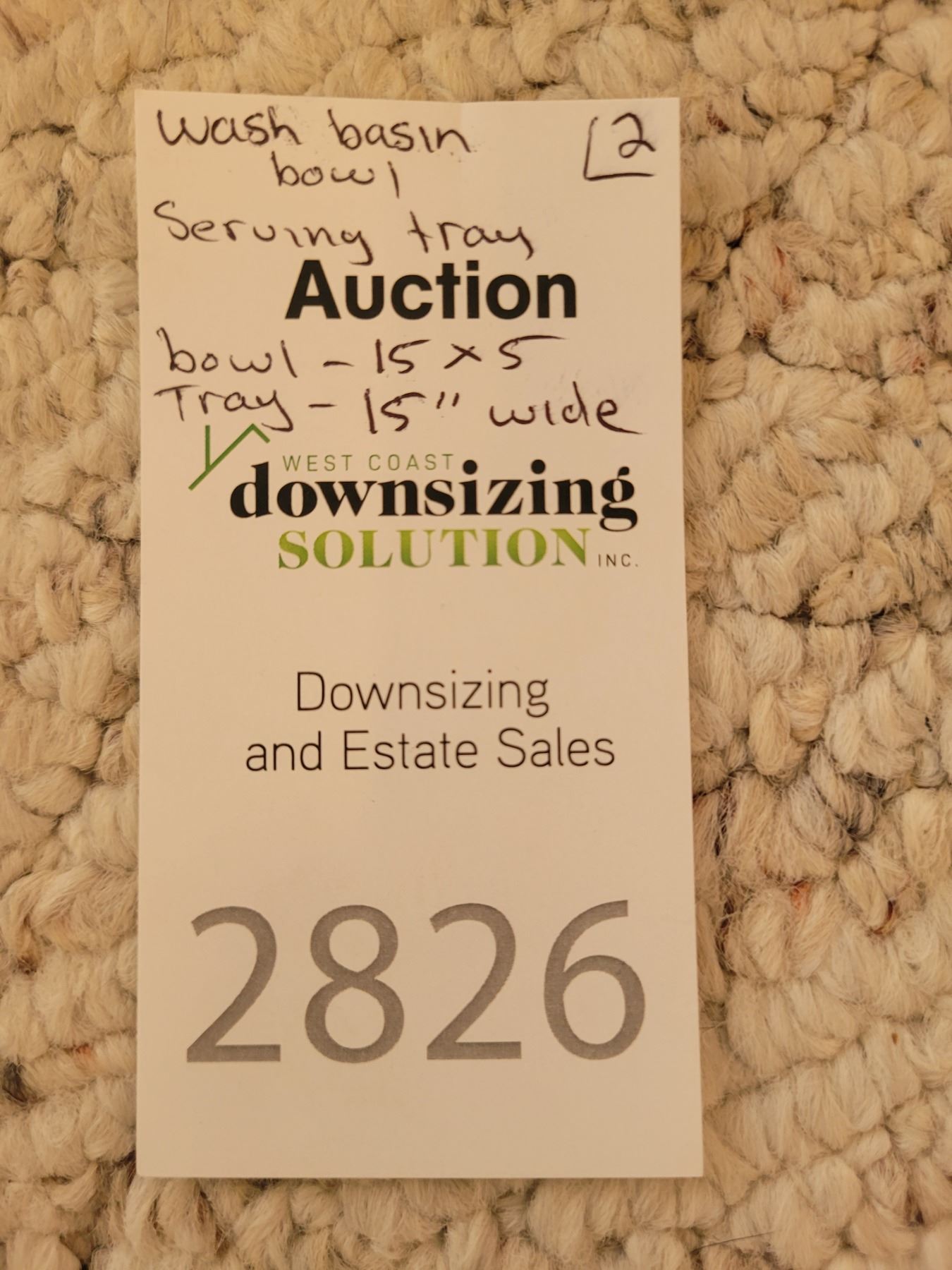 16x16 sq serving tray and 16" washbowl. Pickup at 9 am