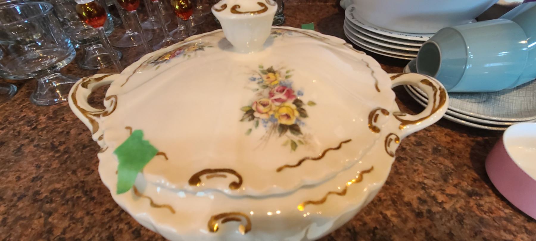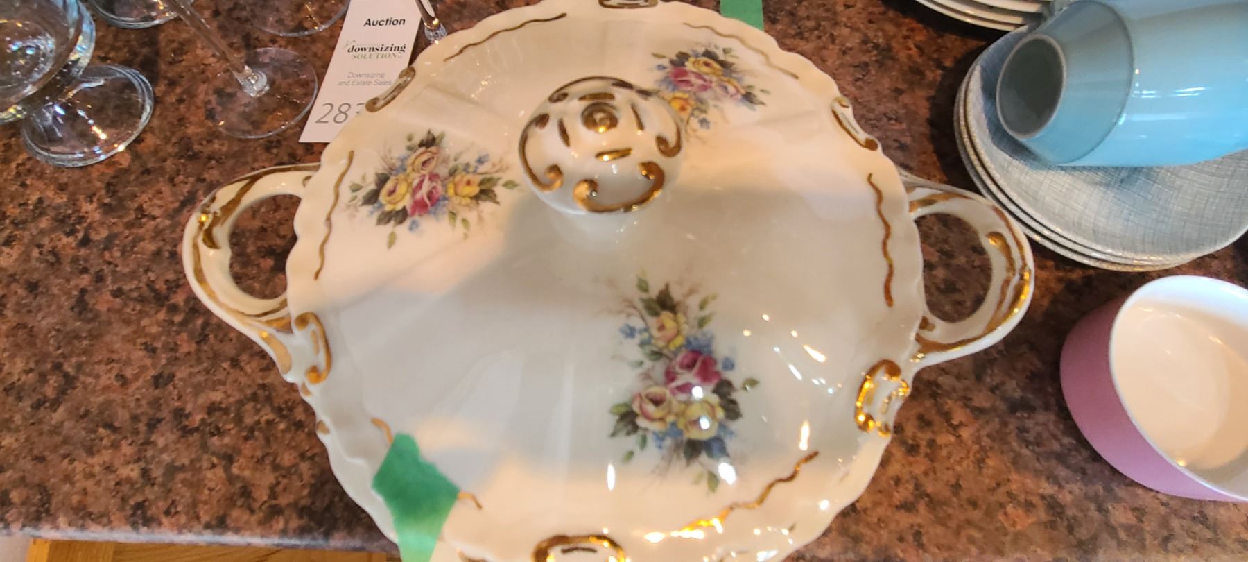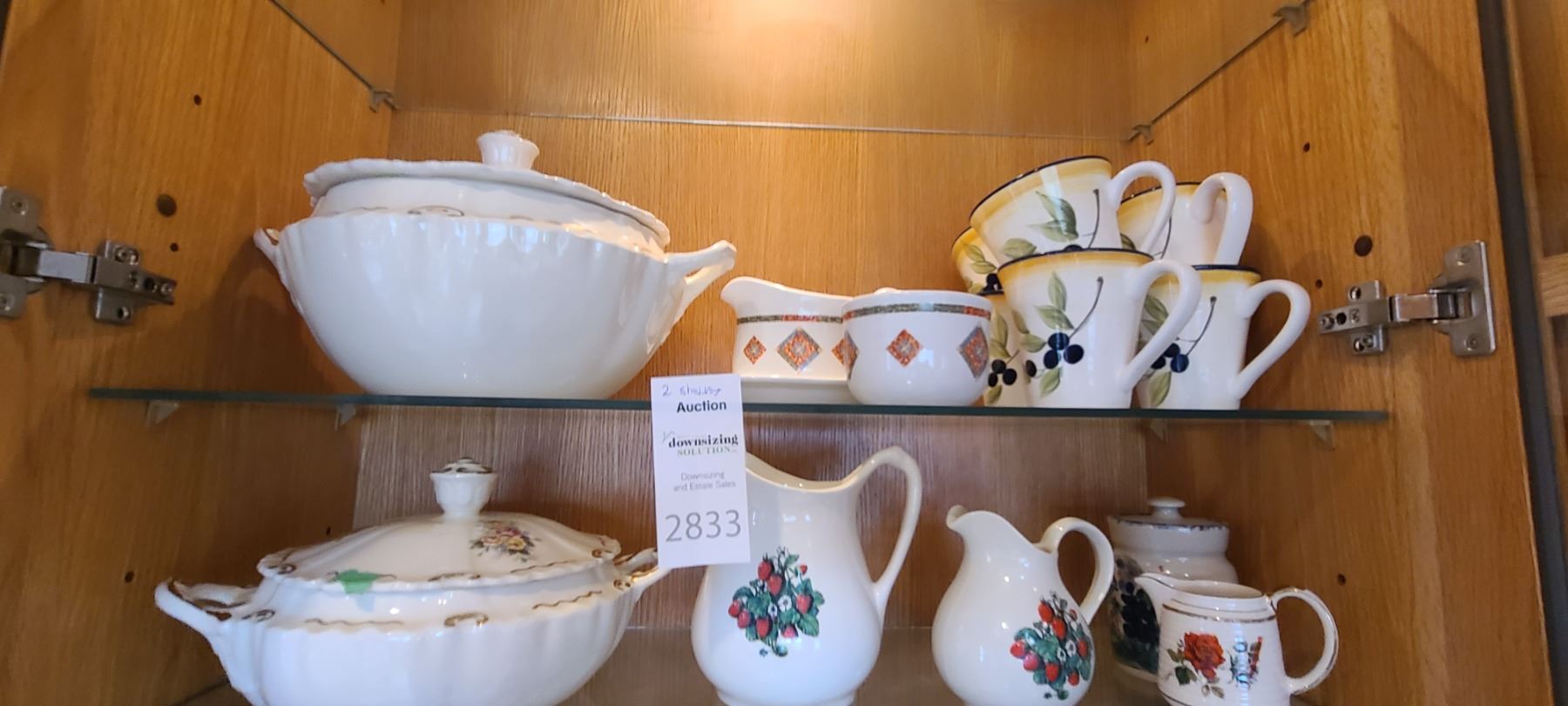 2 Lidded casserole, one lid has chip. Corelli gravy with spill plate and sugar. 6 coffee mugs. Large milk and creamer and more. Bring packing and pickup at 9 am