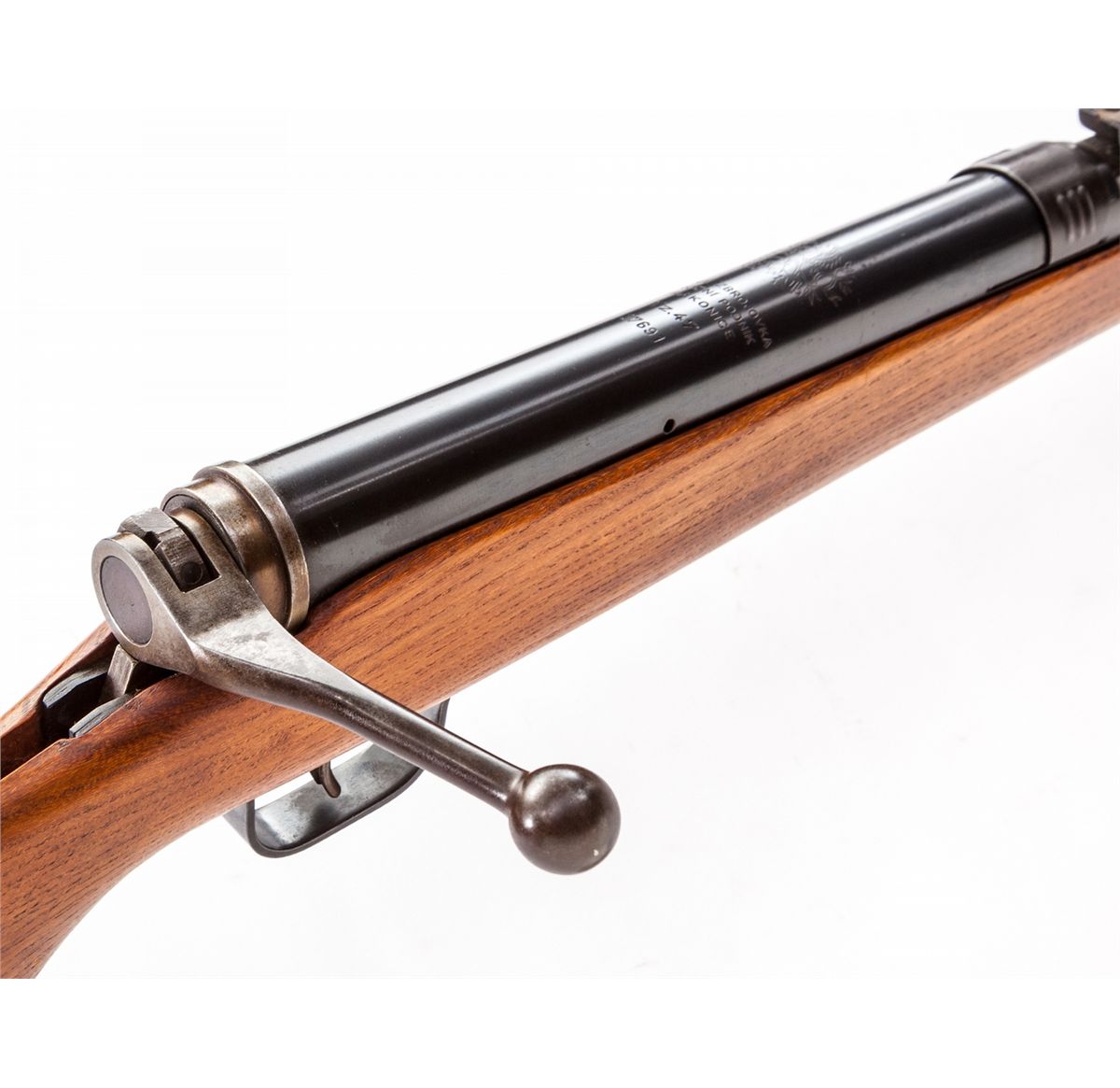 Ceska Zbrojovka Military Training Airgun, Model VZ-47, made in Uhersky Brod Czech Republic in the late 1940s, #37691, .177 cal., 20'' barrel, blue finish, military type rear sight calibrated to 25 yards, European walnut stock. With Czech crest on top of air cylinder. Condition is excellent with slight toning to lever. Est.: $300-$400.
