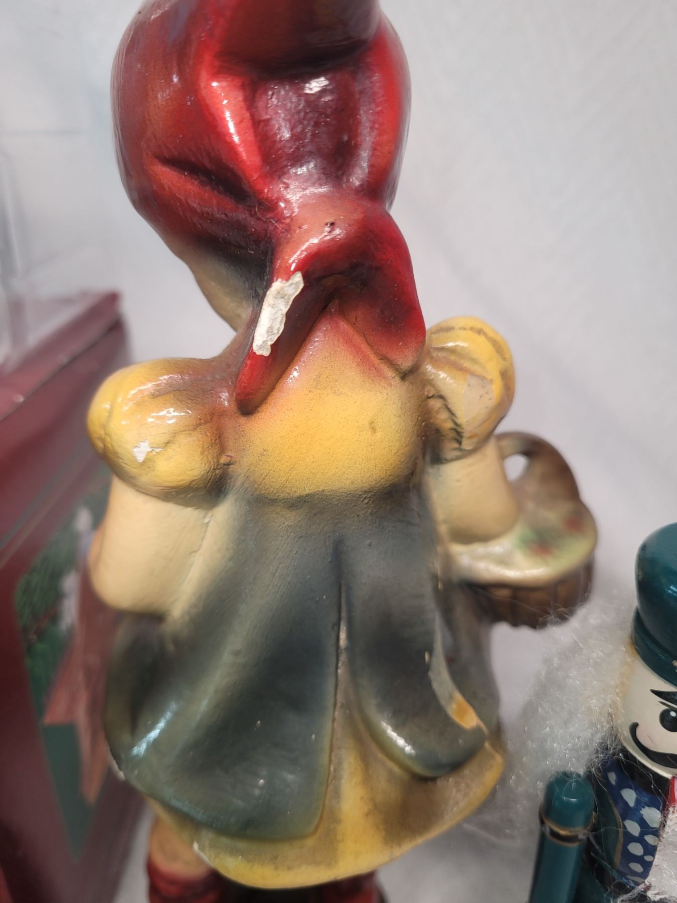 Antique chalk are figurines tallest 8". The Loan Ranger tree ornament and Nutcracker ornament. Pickup at 9 am