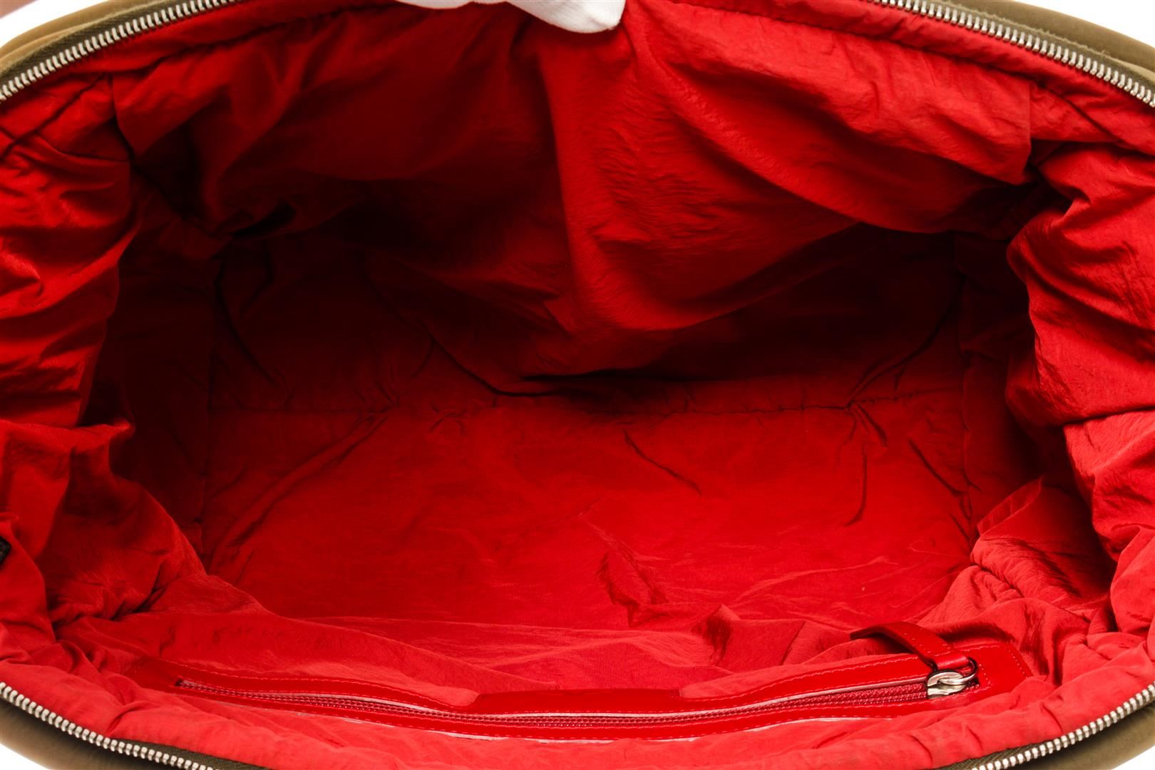One Chanel Dark Green Quilted Nylon Cocoon Bowling Bag. Item is sold AS-IS. All available information is listed in the description and shown in the photo. Chanel Dark Green Quilted Nylon Cocoon Bowling Bag with silver-tone hardware, leather trim, front zip pocket, CC interlocking logo at the front leather, red nylon lining, interior zip pocket, dual nylon rolled handles, and zip closure at the top. .