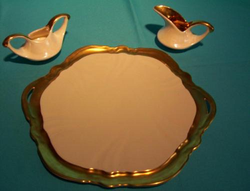 Large Gold & White Charger 14" - Cream & Sugar 3 1/2" Tall. Rosenthal Germany