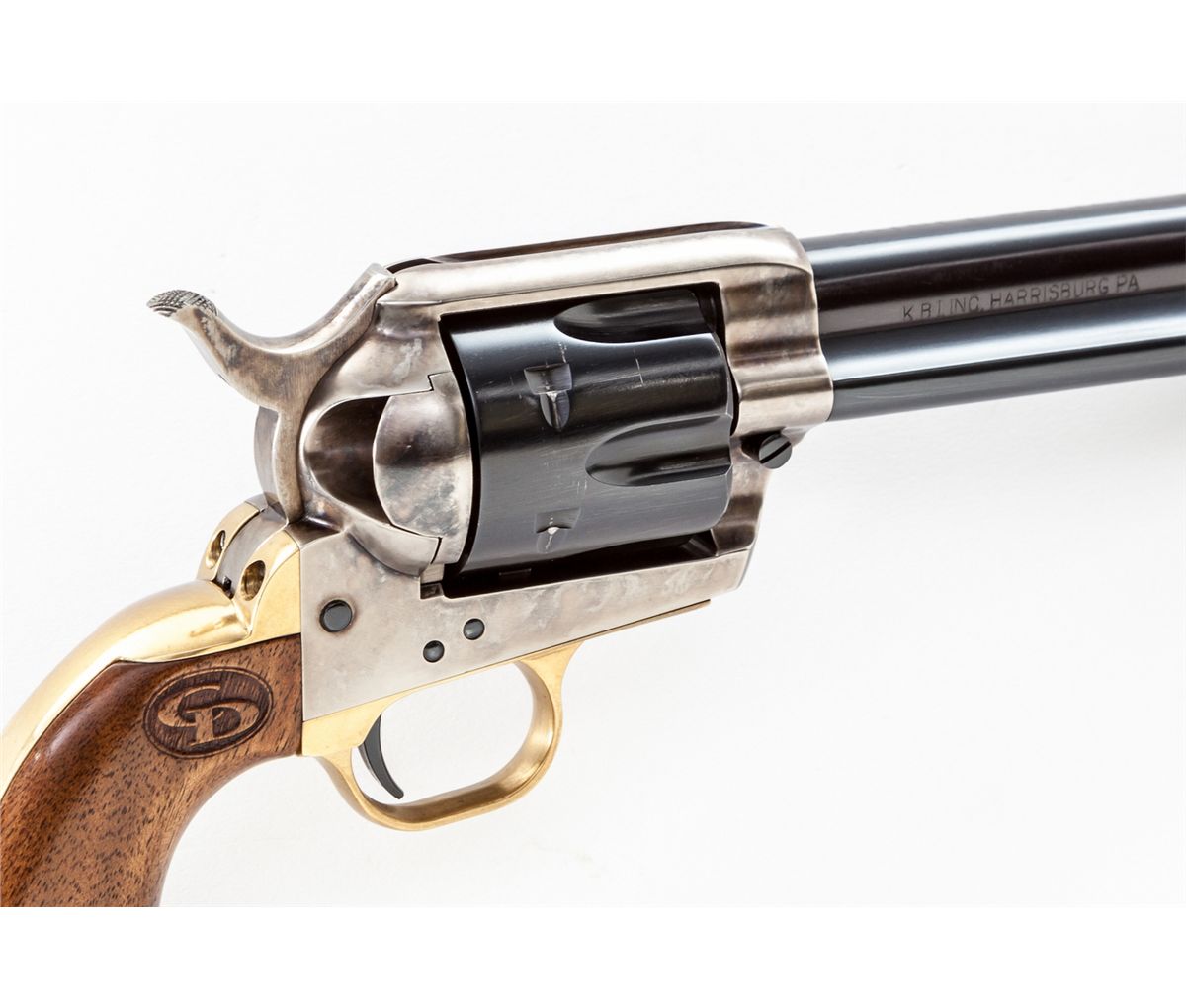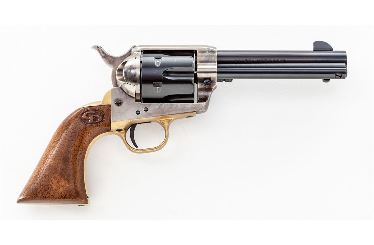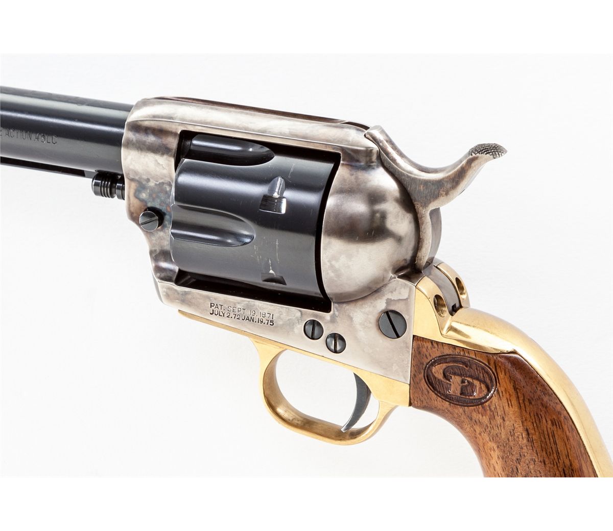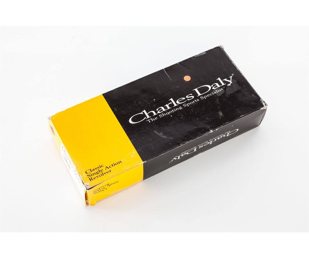 Charles Daly Single Action Army Revolver, #E06906, .45 Colt cal., 4-3/4'' barrel, blue and case hardened finish, dark stained hardwood grips, with brass backstrap and triggerguard, in original box. Condition is excellent showing just light marks from handling. Est.: $500-$750. (Modern)