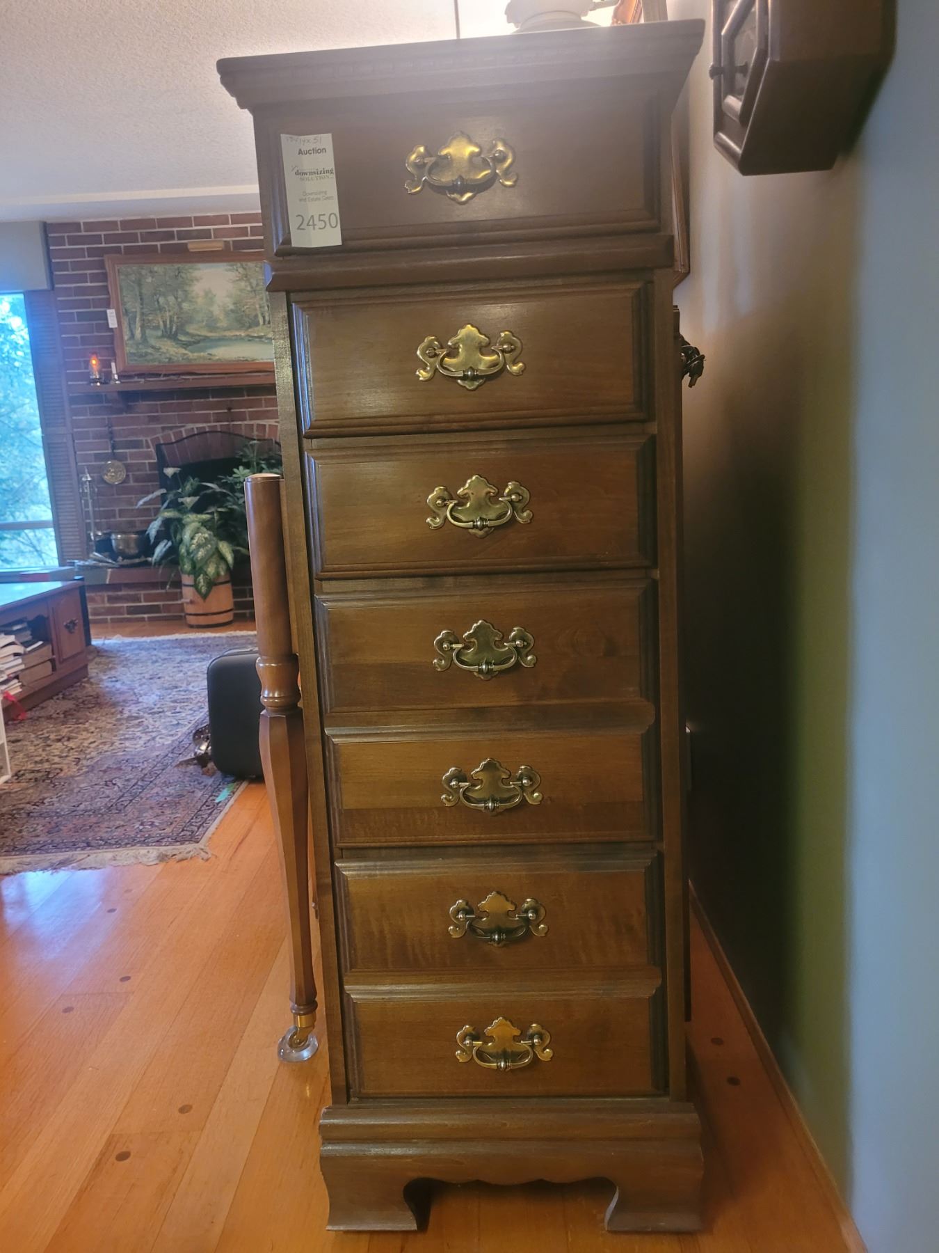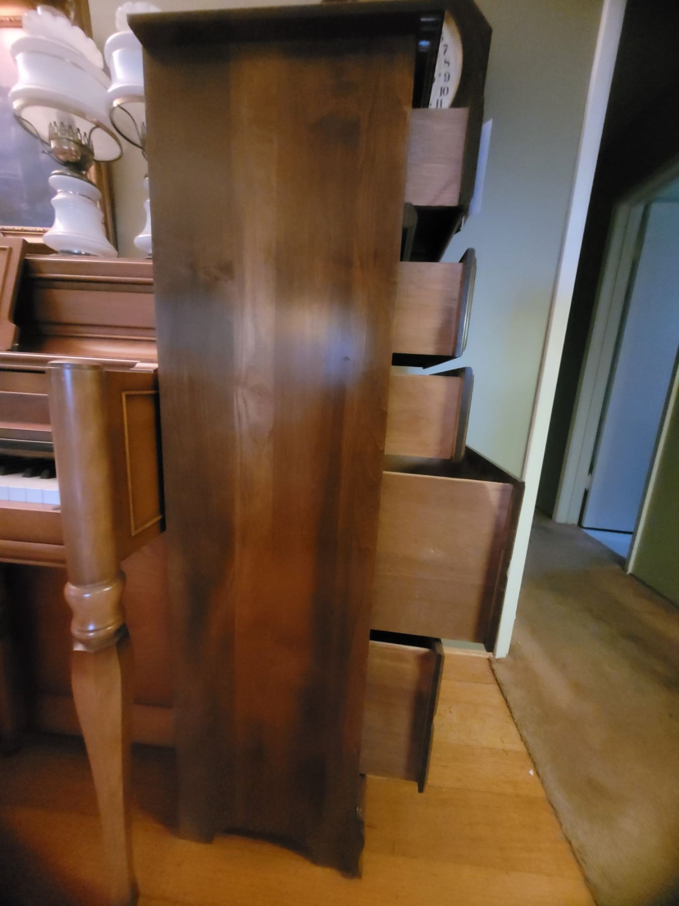 Narrow chest of drawers, one is a double drawer 18x14x51 Pickup at 11 am