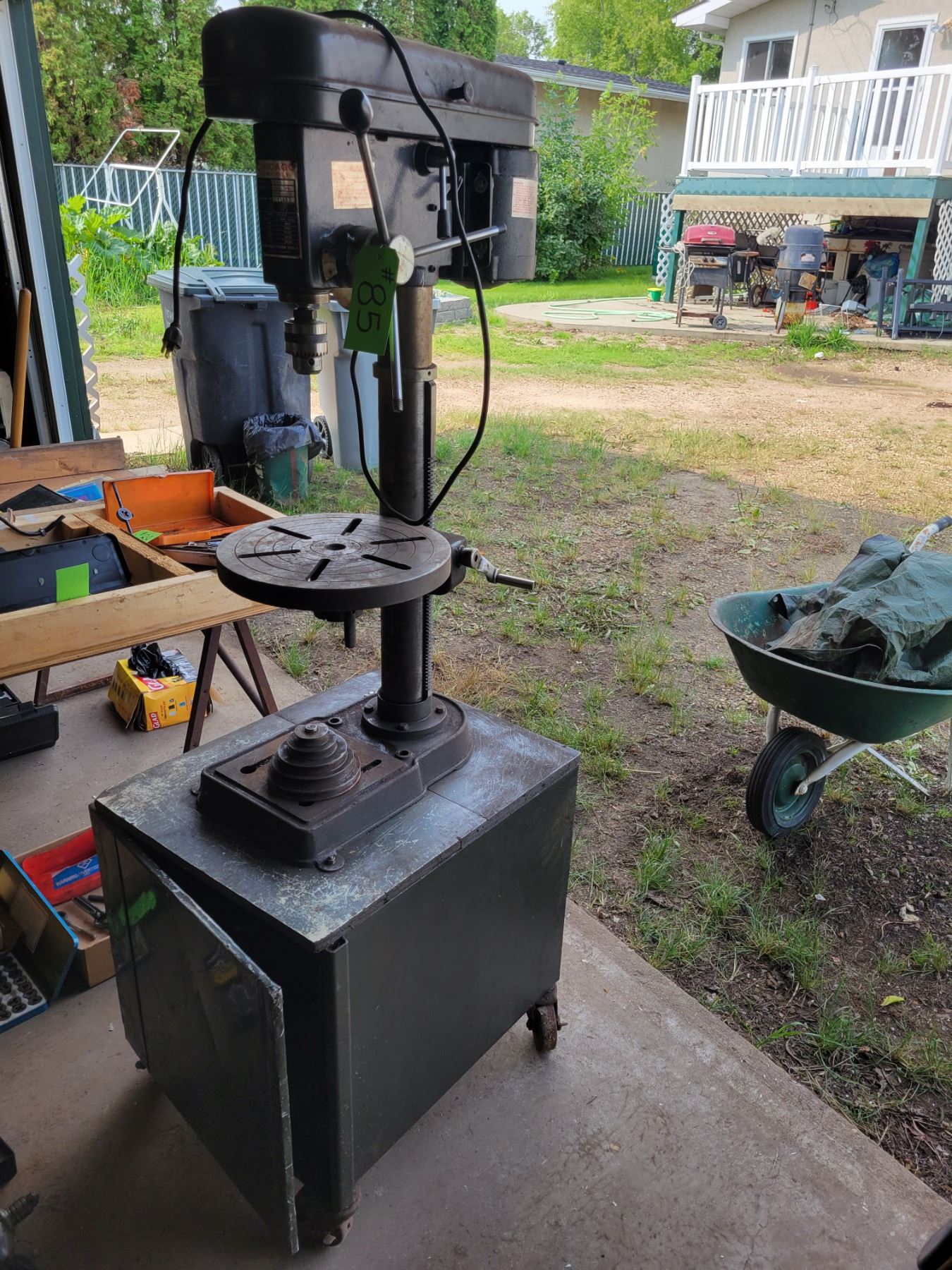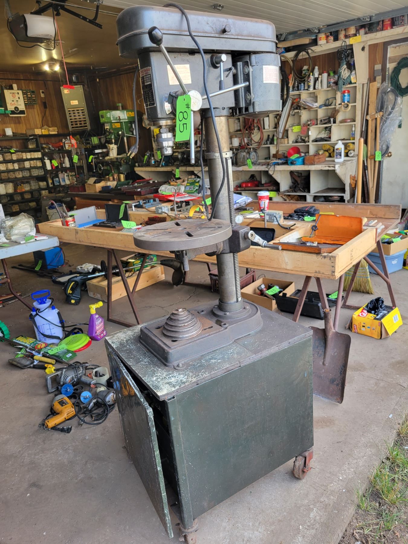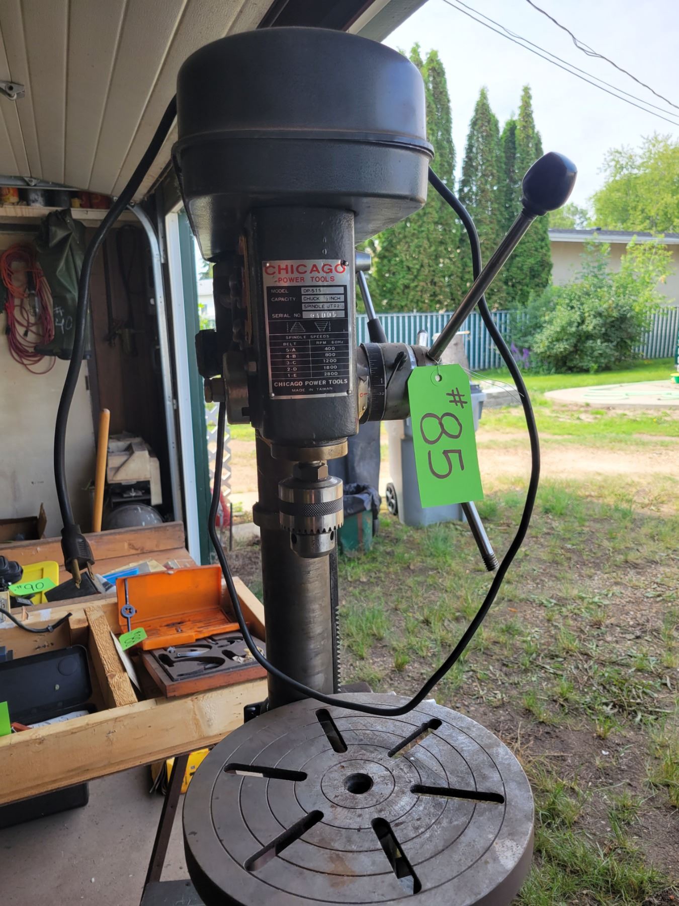 Chicago power Drill press, Model DP515, 1/2" chuck, SN.91005 on roller stand and 3-drawers