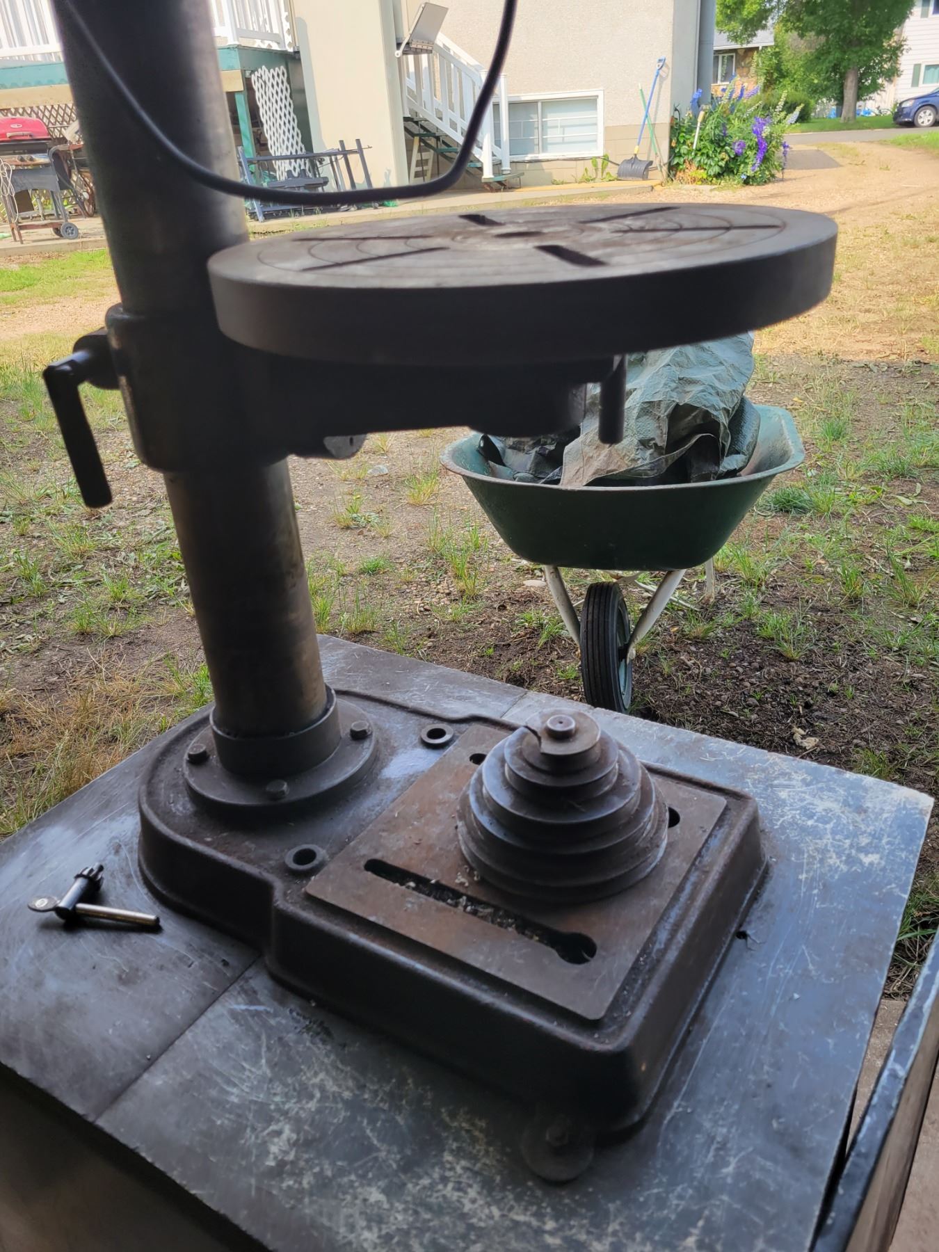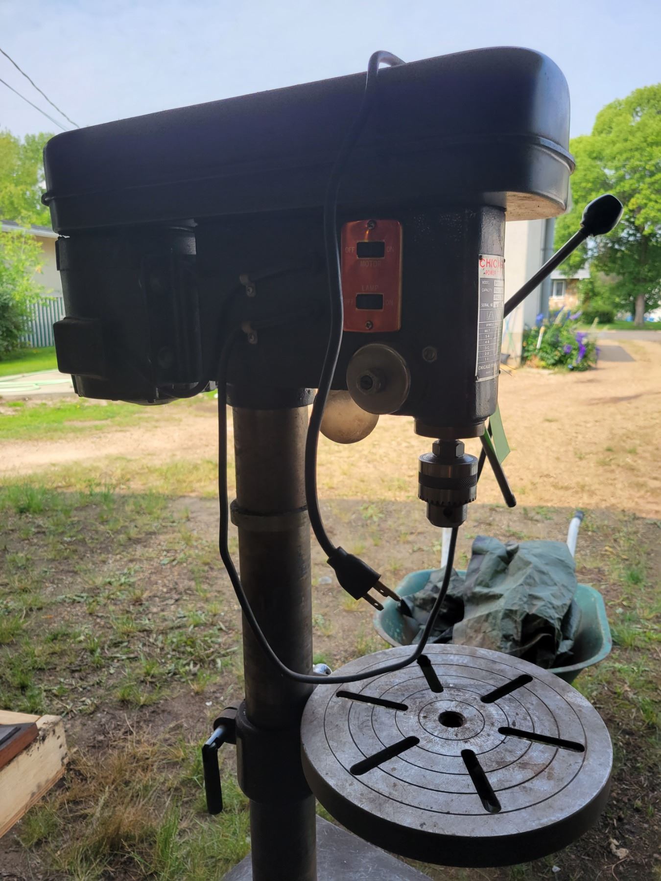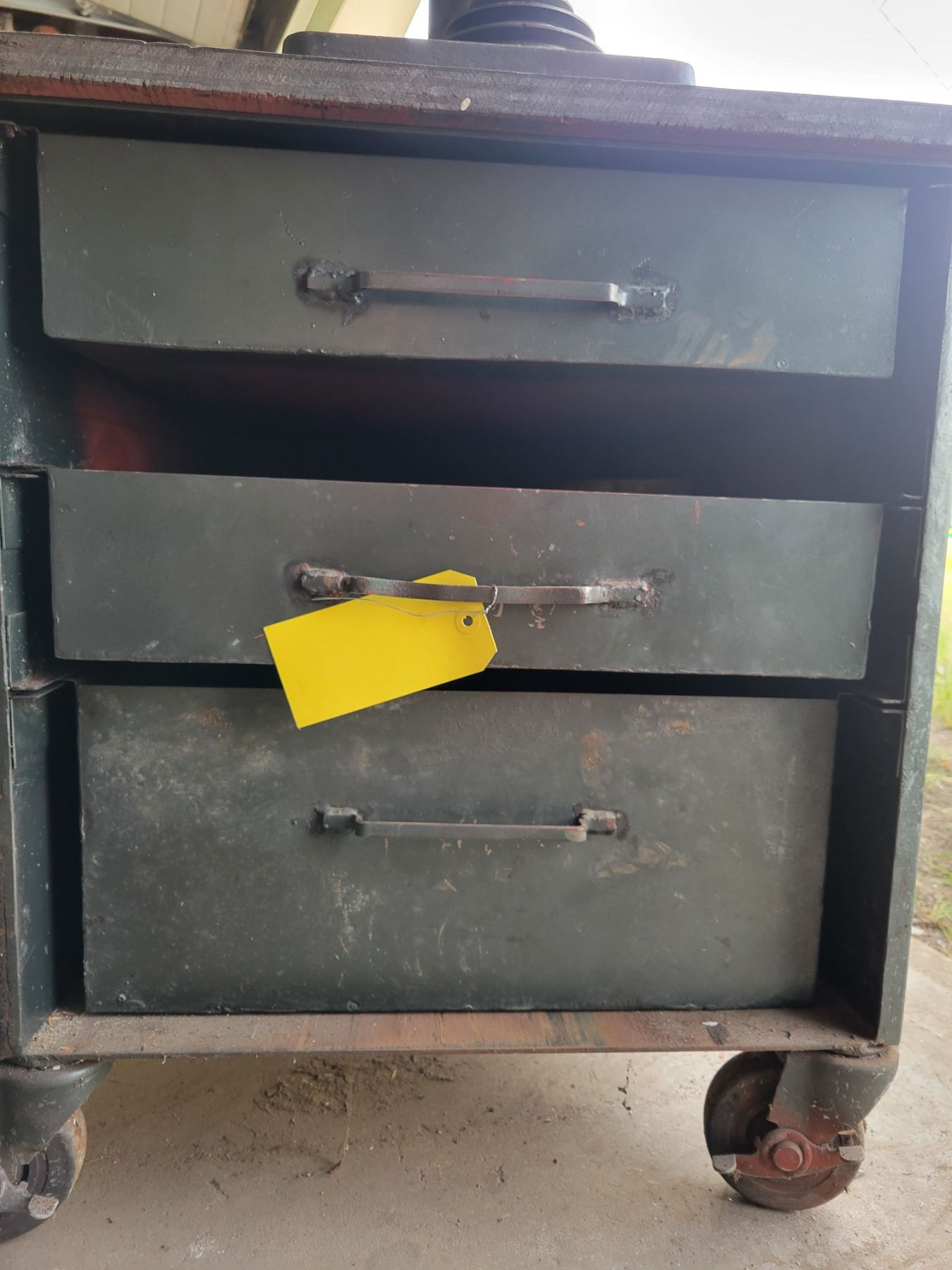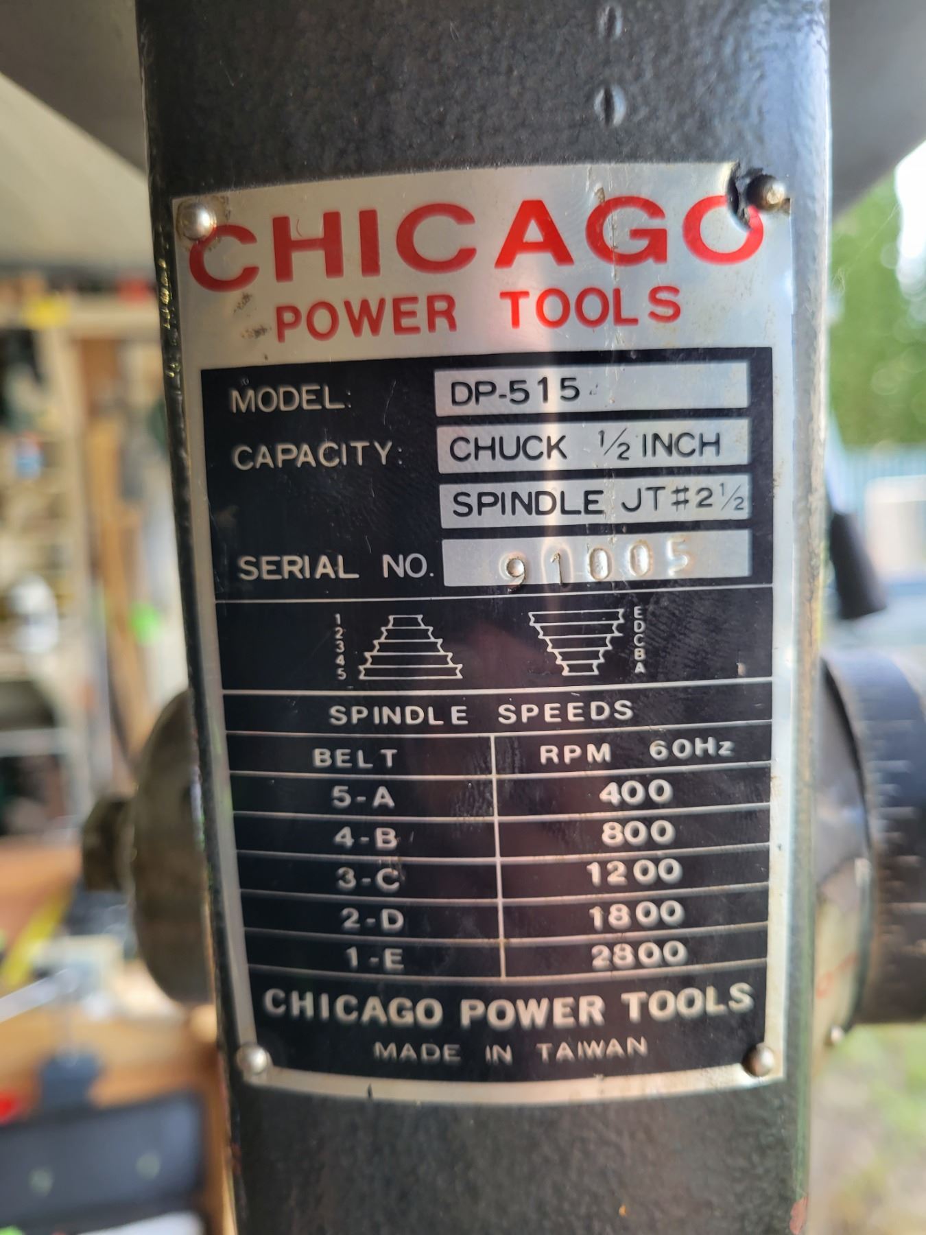Chicago power Drill press, Model DP515, 1/2" chuck, SN.91005 on roller stand and 3-drawers
