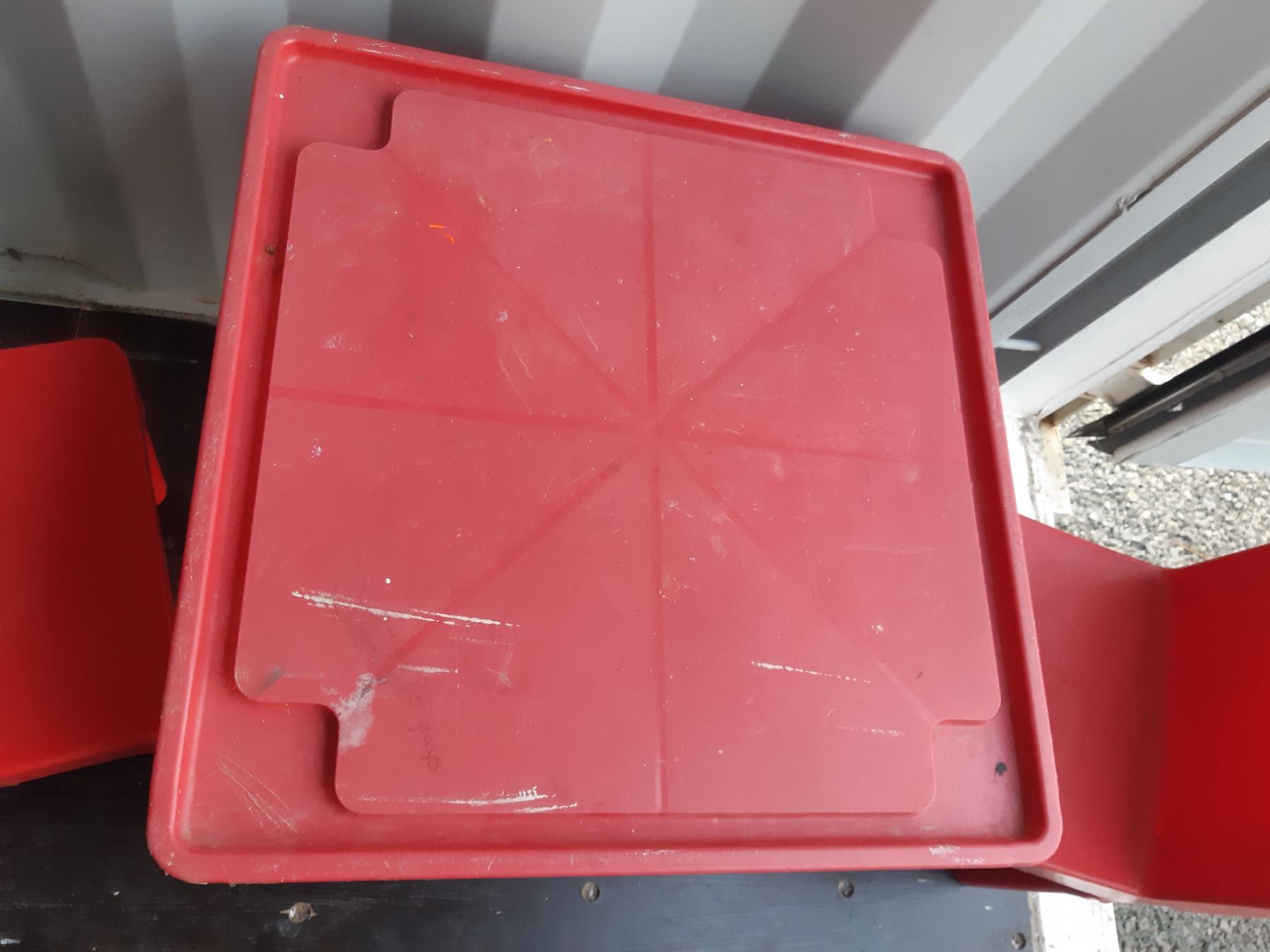 Red plastic table with two chairs and Barbie Doll Air Plane. Pickup at 11 am