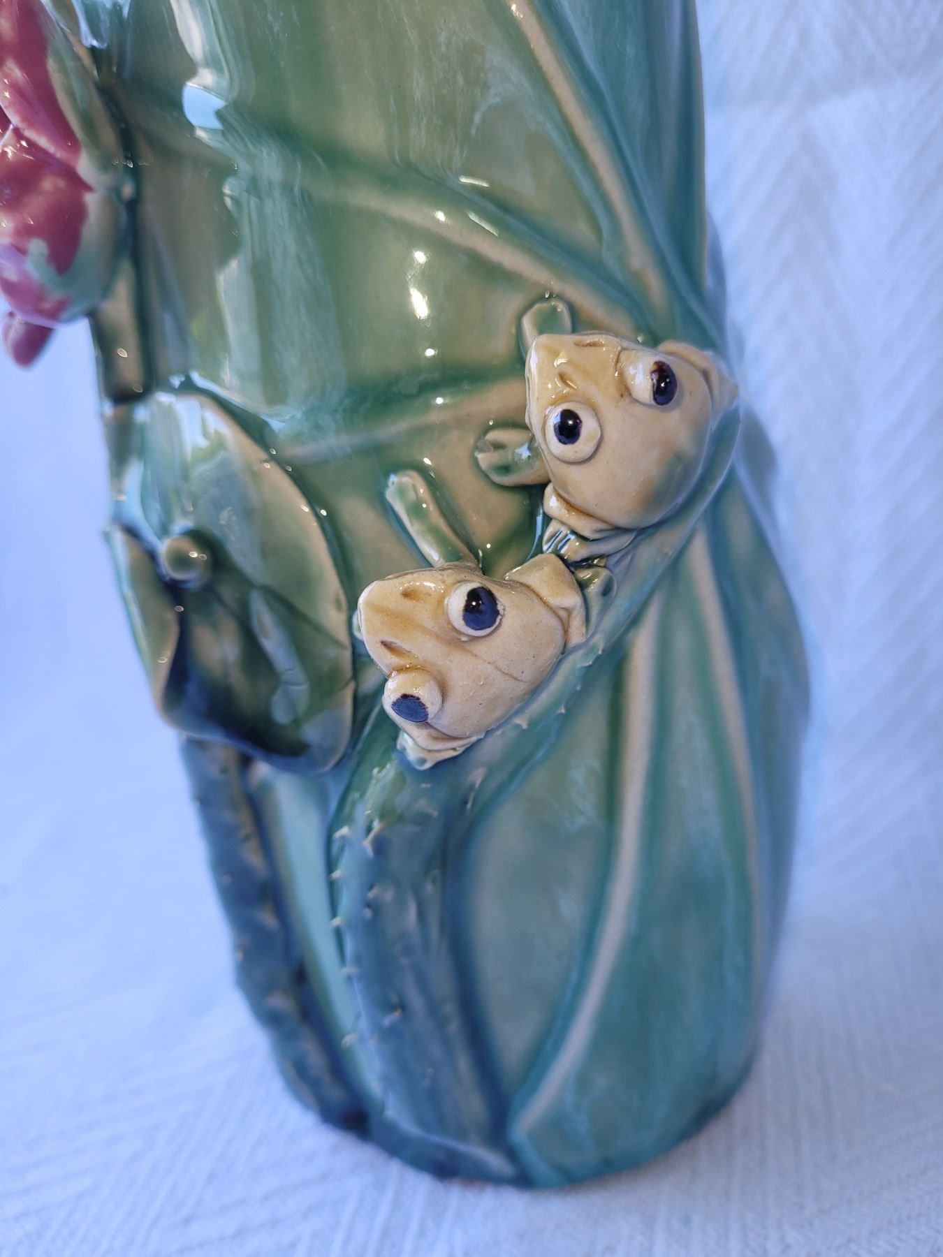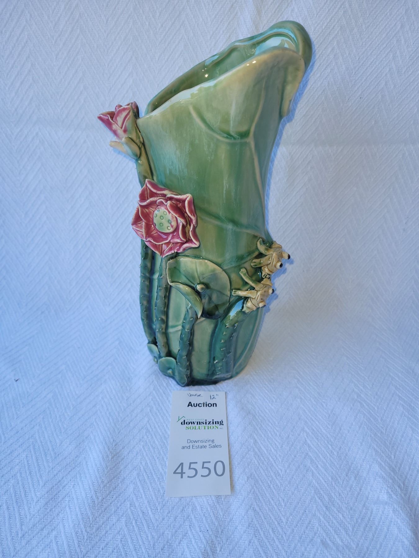 12" vase with flowers and tree frogs. Pickup at 9 am