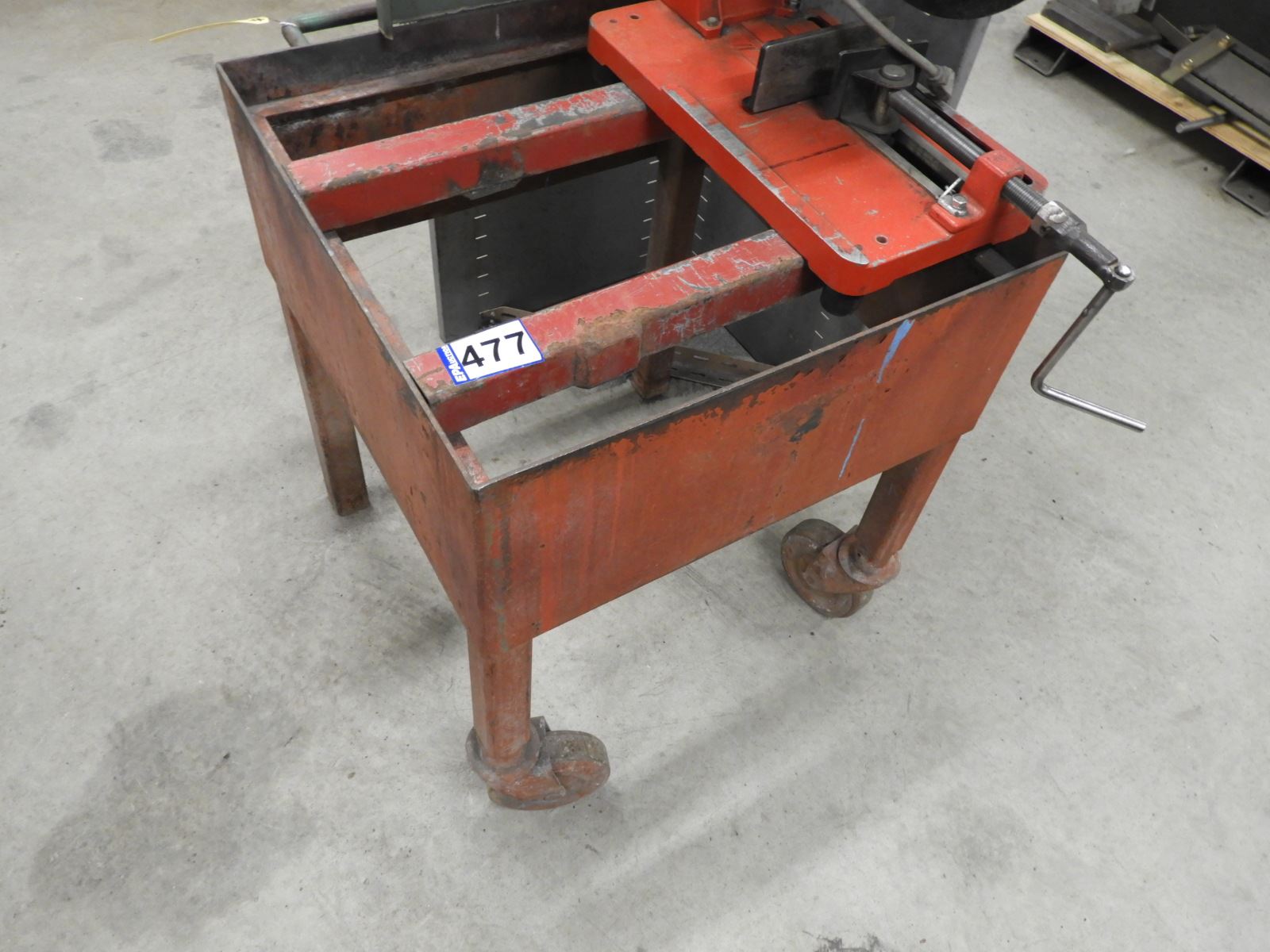 Chop saw cart (chop saw not included) on wheels with cutting shield