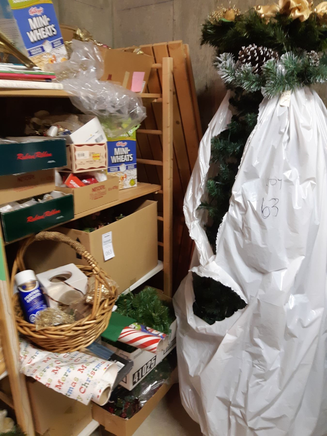 Christmas trees with lights, Christmas decorations and christmas crafts, Easter decor, gift bags, weighted snow men, wrapping papper, soft dolls, wreaths, plus more. Please bring packing materials. Please pick up at 11:30 am