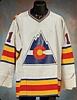 On the inside back collar is a "Rawlings" manufacturer's size "46" tag. On the inside back is the original fight strap. On the front is the large "Rockies" logo in blue, yellow, & red silk screen. On the back and on both sleeves is the player number "11" in blue on red vinyl lettering. Across the back is the player name "SALESKI" in blue vinyl lettering on a white name plate. The sleeves have been cut shorter at the ends. The jersey shows nice game-use with many hit marks and besides having the sleeves cut appears to have no alterations of any kind. Accompanied by a LOA from Milt Byron.
