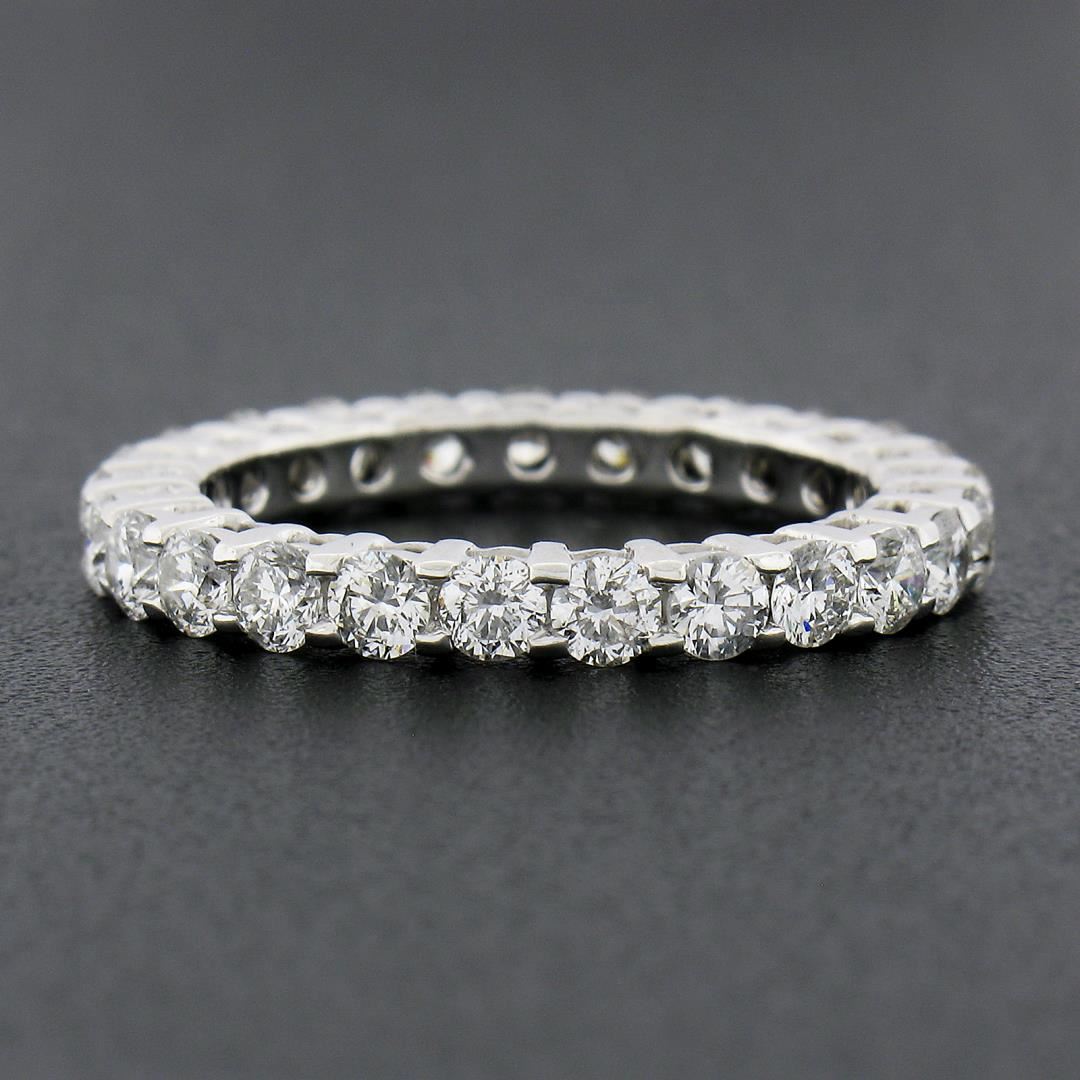 a solid 14k white gold eternity band ring, with 25 round brilliant cut natural diamonds (G/H - SI1/SI2 w/ a few I1 ; 1.60ctw). The ring is size 6.0, weighs a total of 2.92 grams, and measures 2.75mm wide.