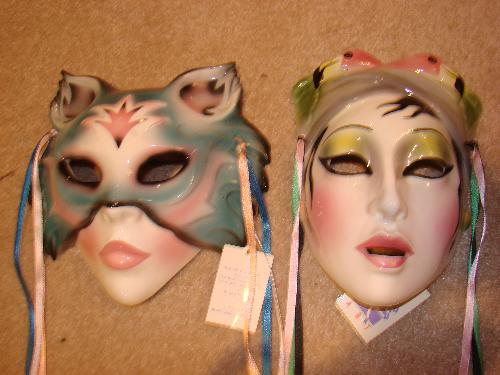 Clay Art Masks, One is cat design, one has pink flamingos