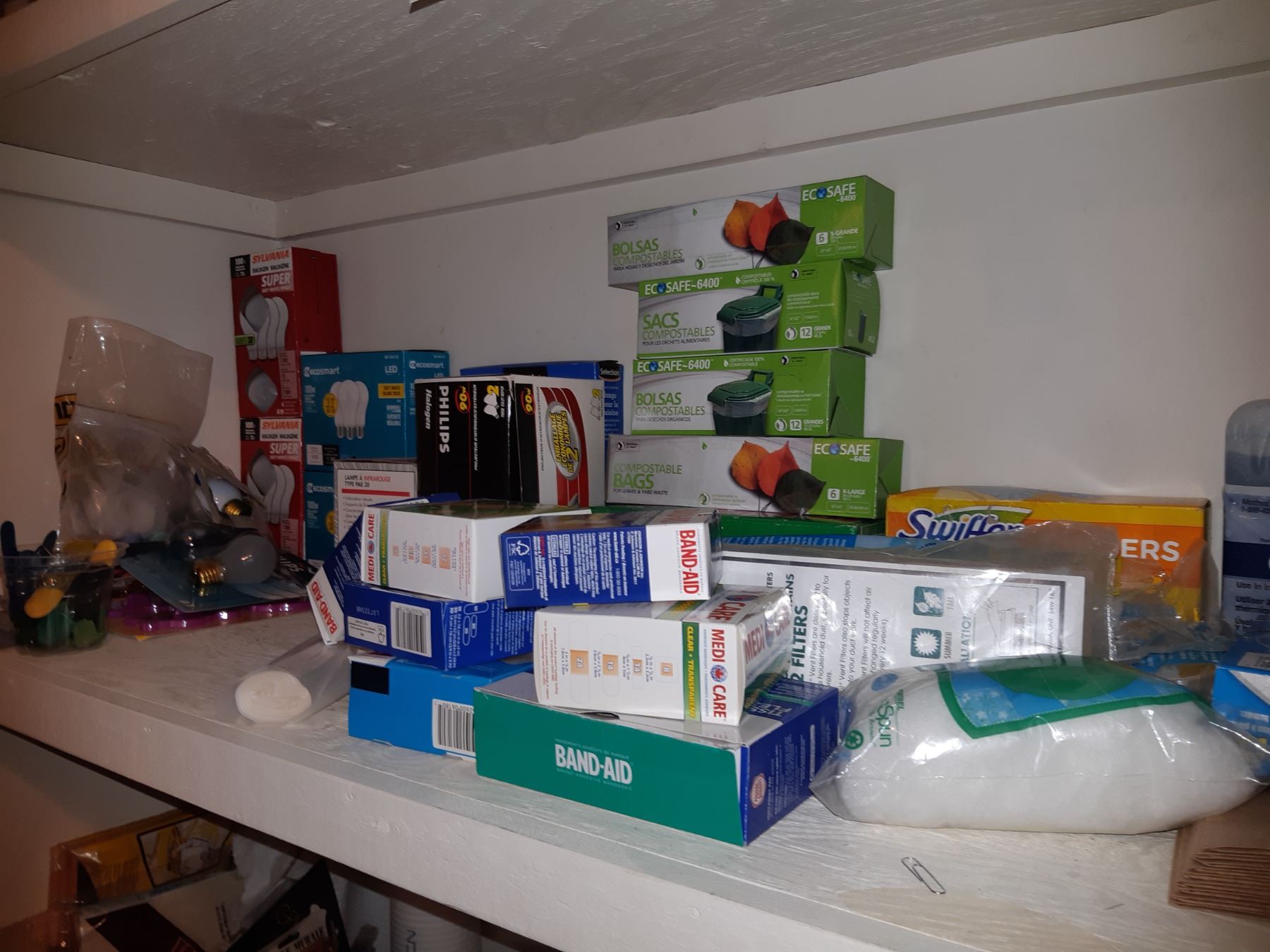 Step stool, fluorescent bulbs, Lysol cleaners, pickup 11am