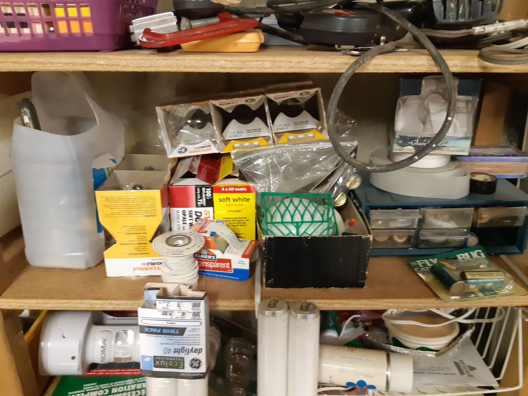 Assortment of light bulbs cleaning, Sears Electric drill and more. Bring packing and pickup at 10 am