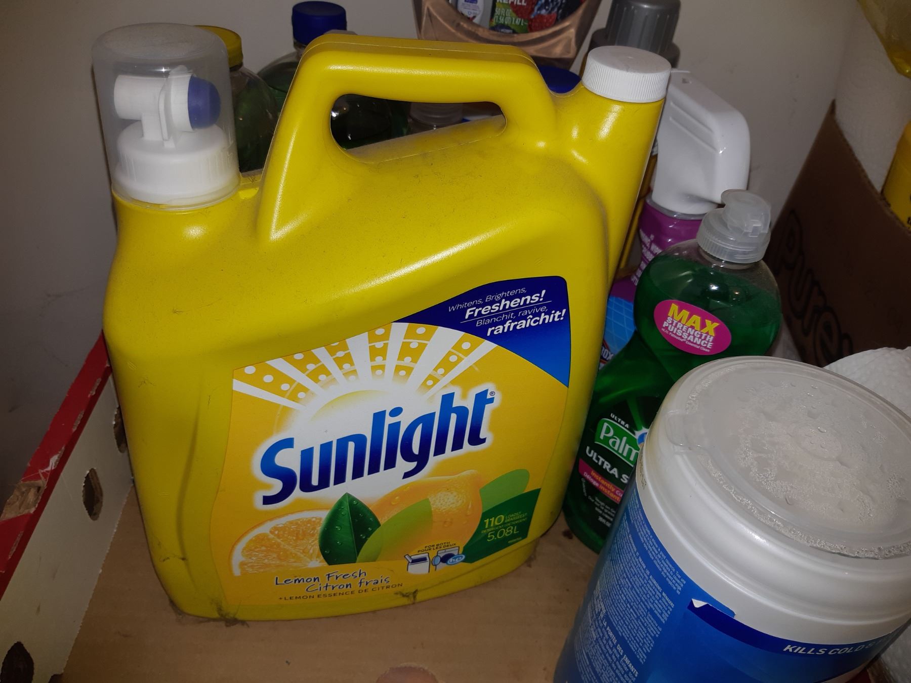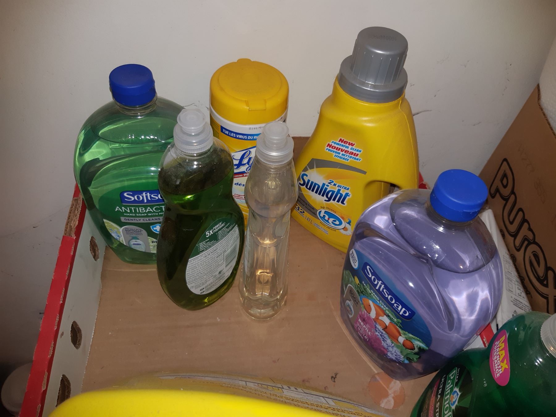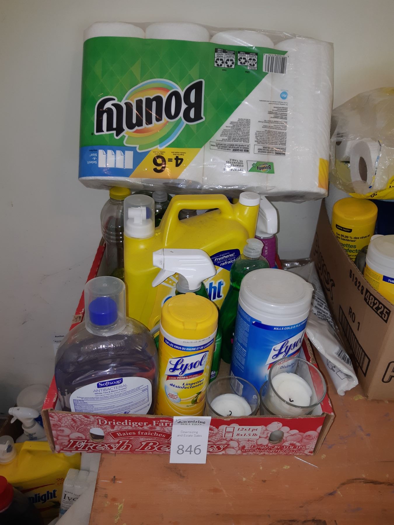 Bacterial soap, paper towel, cleaners, Lysol wipes, laundry, not checked for completeness. Pickup 9am