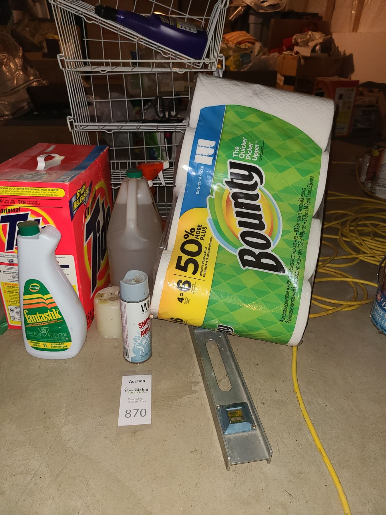 Tide. Soap powder, Bounty paper towels, storage rack and more. Pick up at 9 am