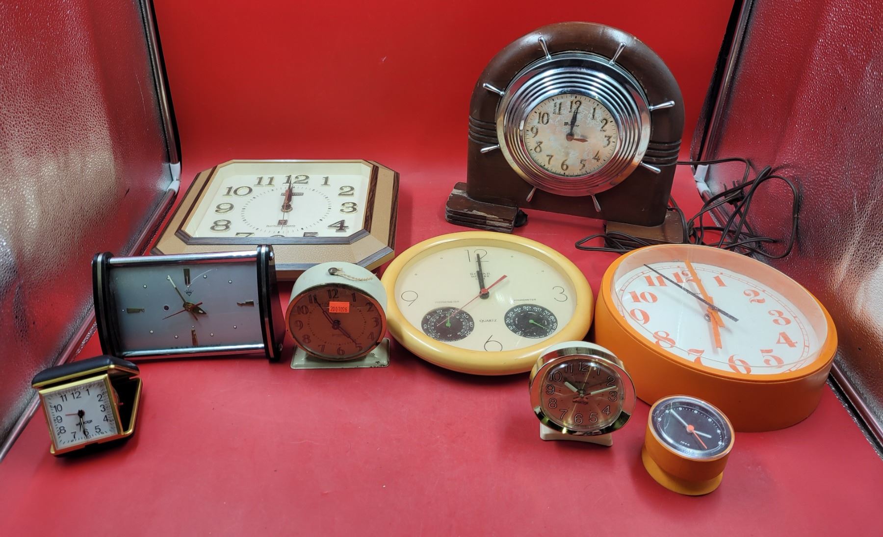 Clock Lot w/ Travel Clock, Wall Clocks, & Mantle Clocks