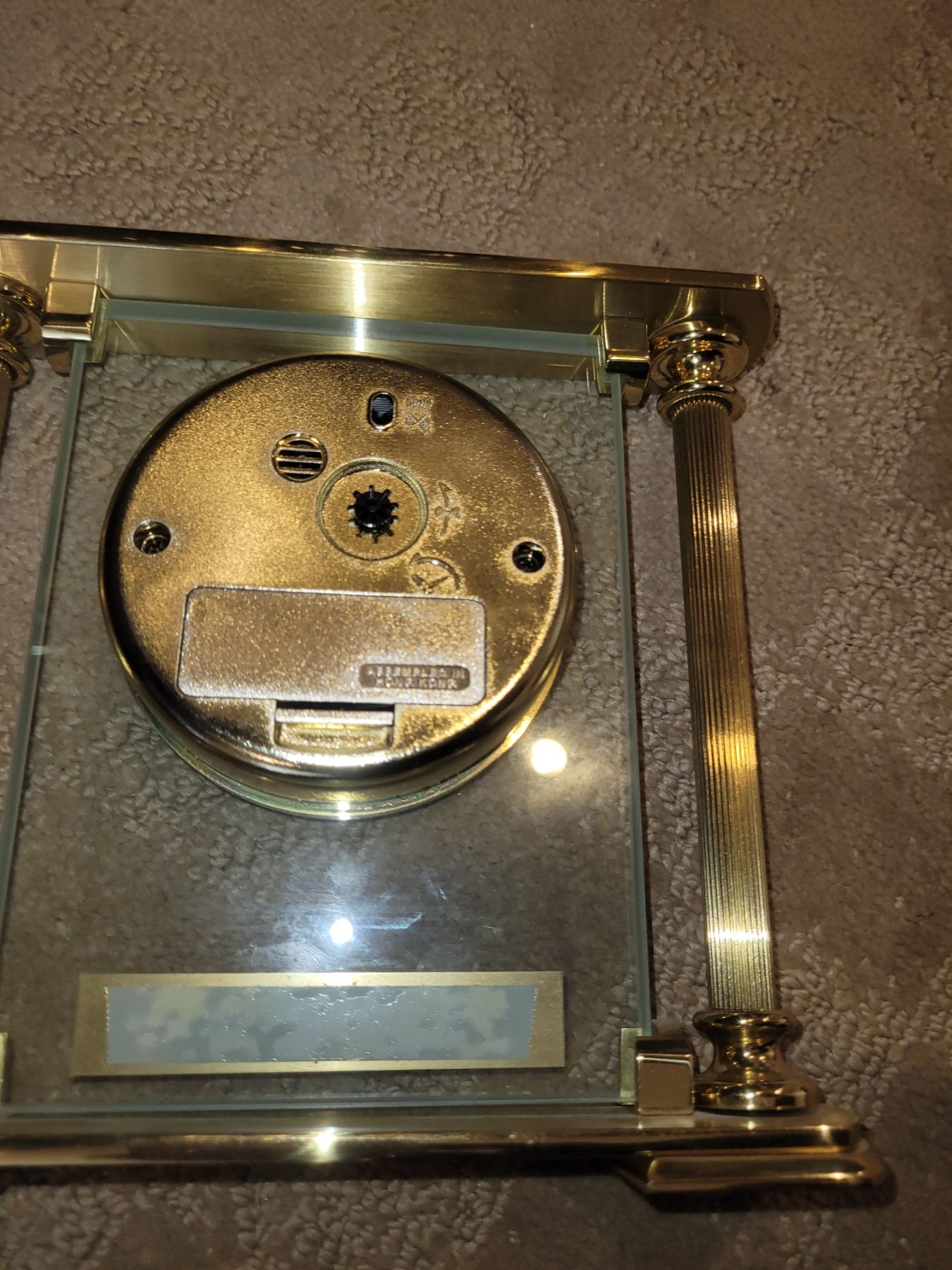Vintage looking battery operated wall clock, Movado tavpble clock, more. Pick up 9-10