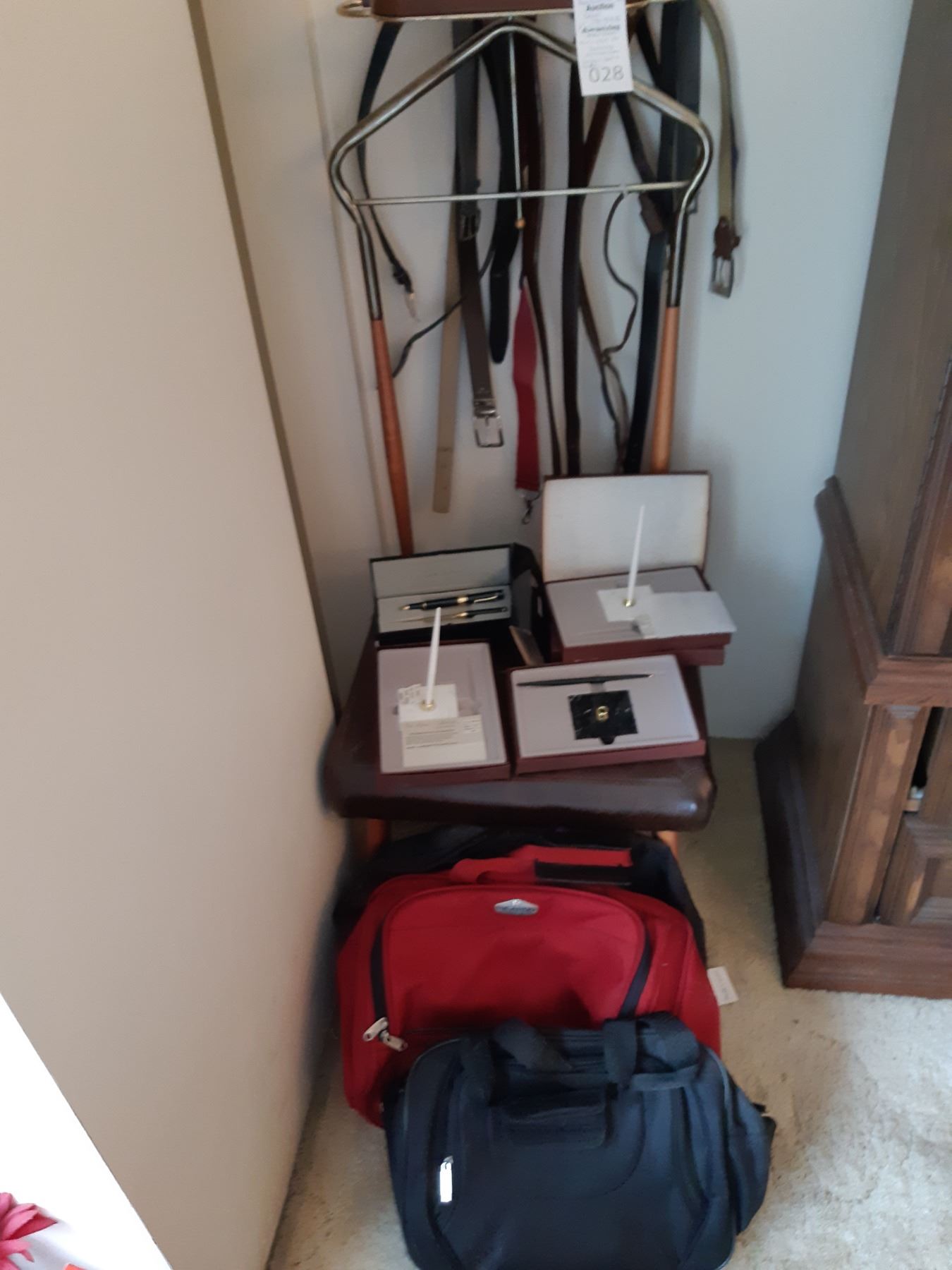 Cloths butler, belts, travel bags, new pen sets, pickup 11am