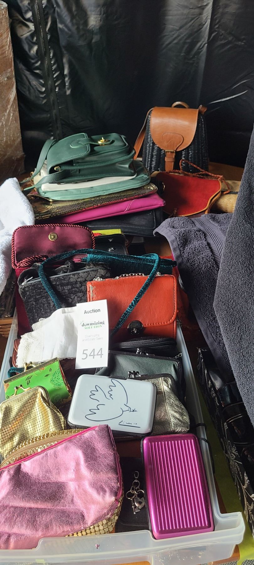 Large assortment of clutches, wallets of mixed fabrics, colors. Pickup at 10 am