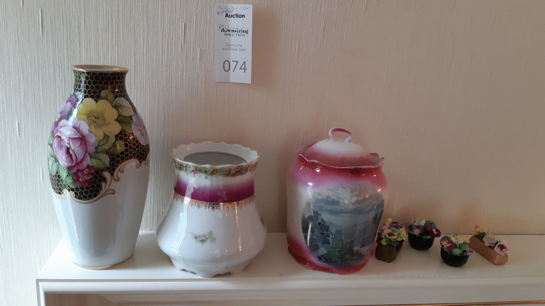 Tallest vase by Rosenthal is 9.5". Four coalport florals with some chips, two porcelain containers, one missing lid. Bring packing materials