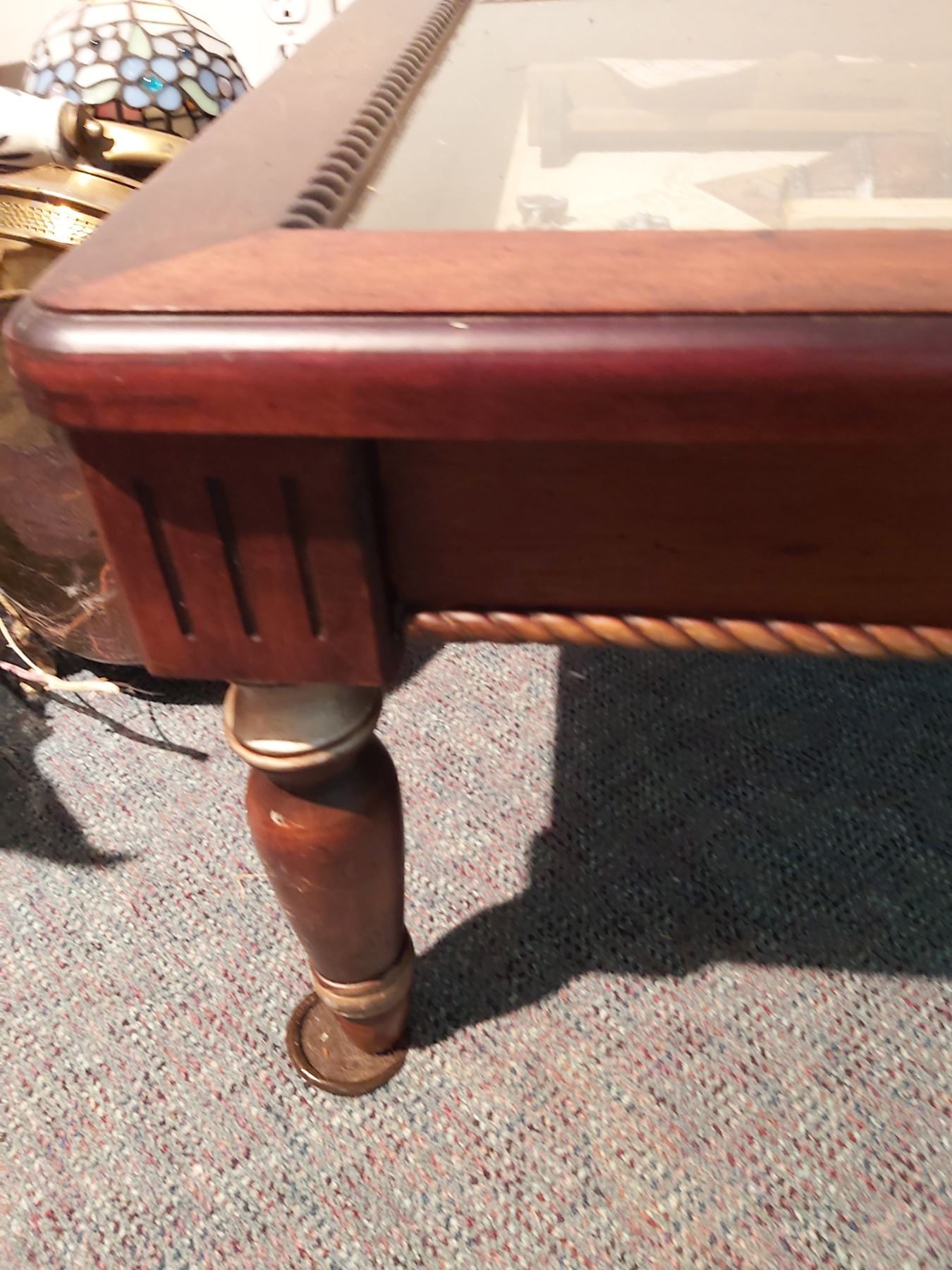 Coffee table, 44x24x16, with vineyard scene built under glass. Pickup 11 am cat. C.