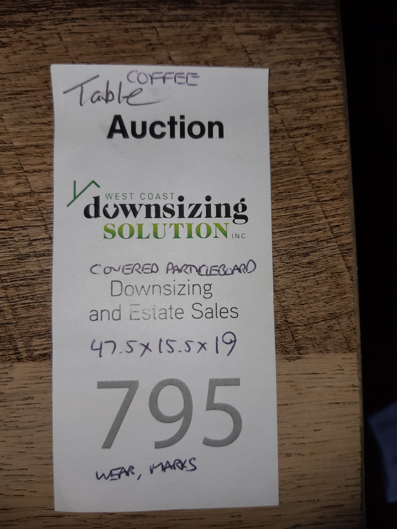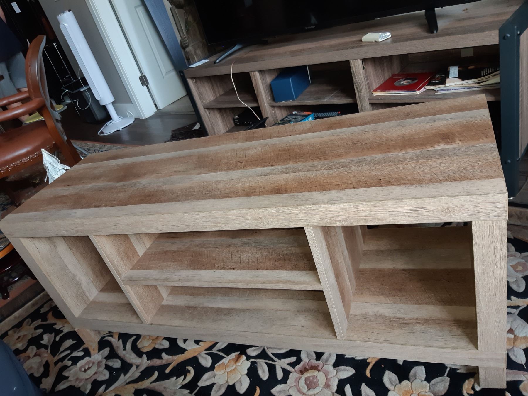 Rustic looking coffee table made of particle board. 47x15x19. Pickup at 12:30 pm