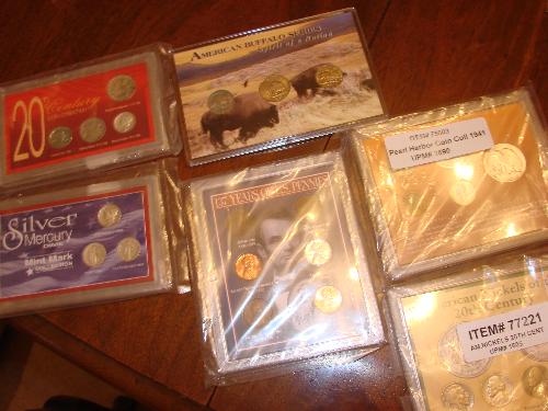 Coins-6 encased sets, Buffalo series, Mercury Dimes, Nickels, Pennies