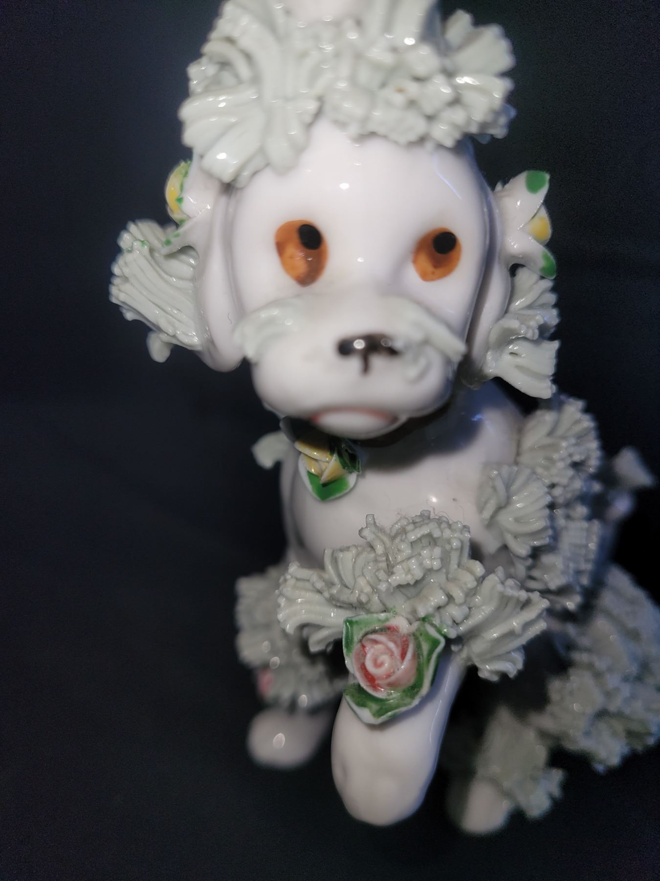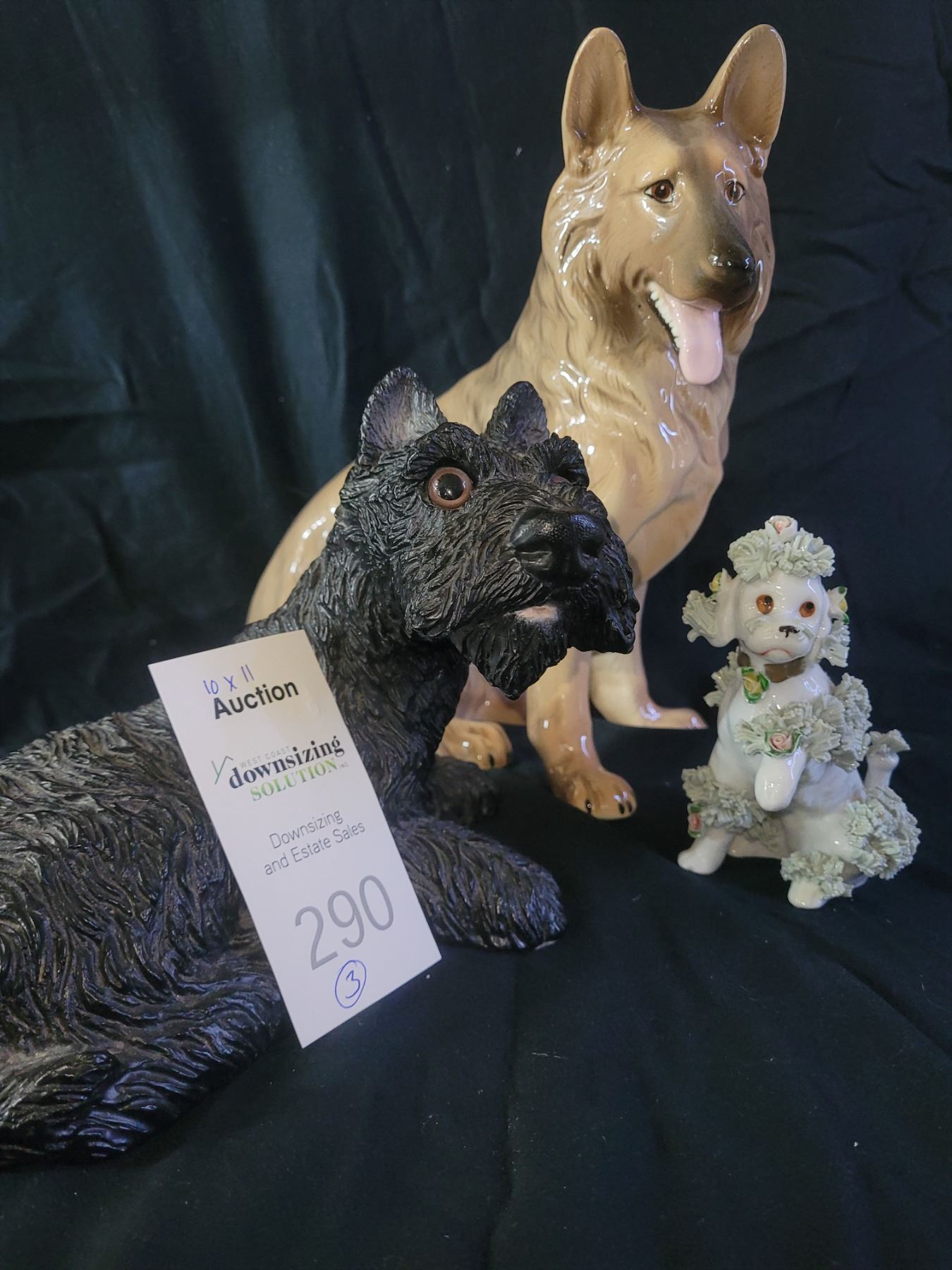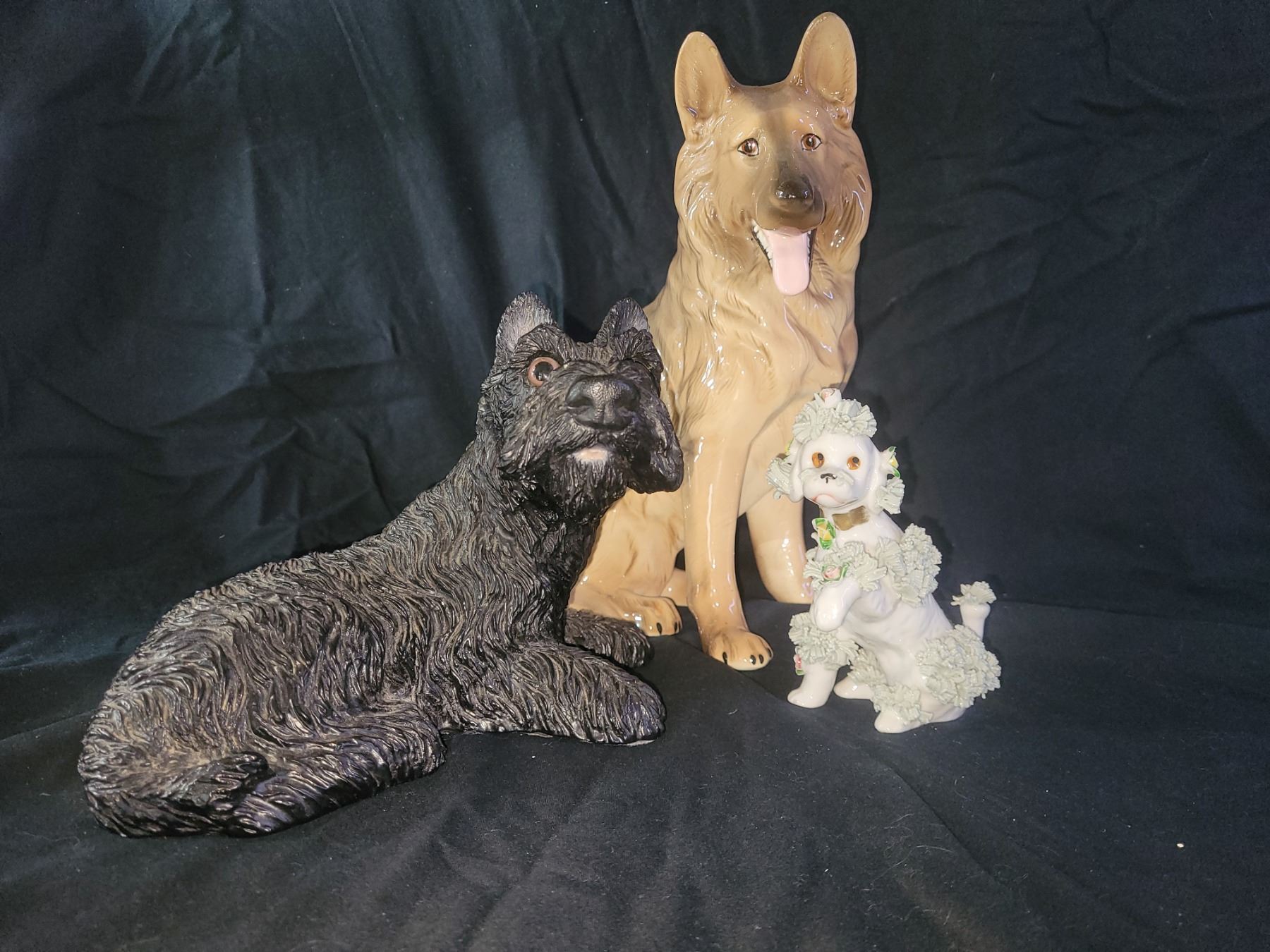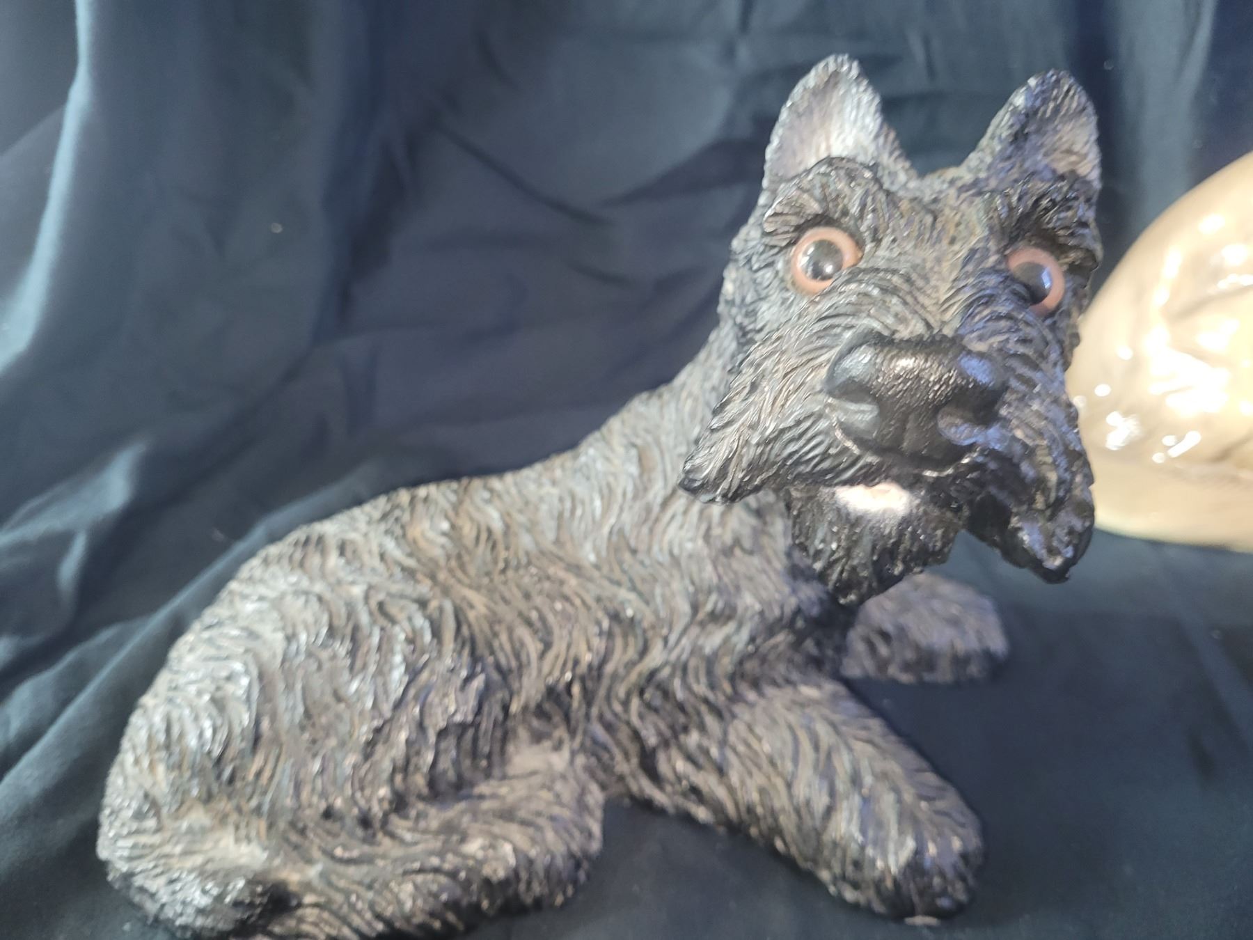 Ceramic dog 10x11. Porcelain poodle and black terrier made of resin. Pickup at 9 am