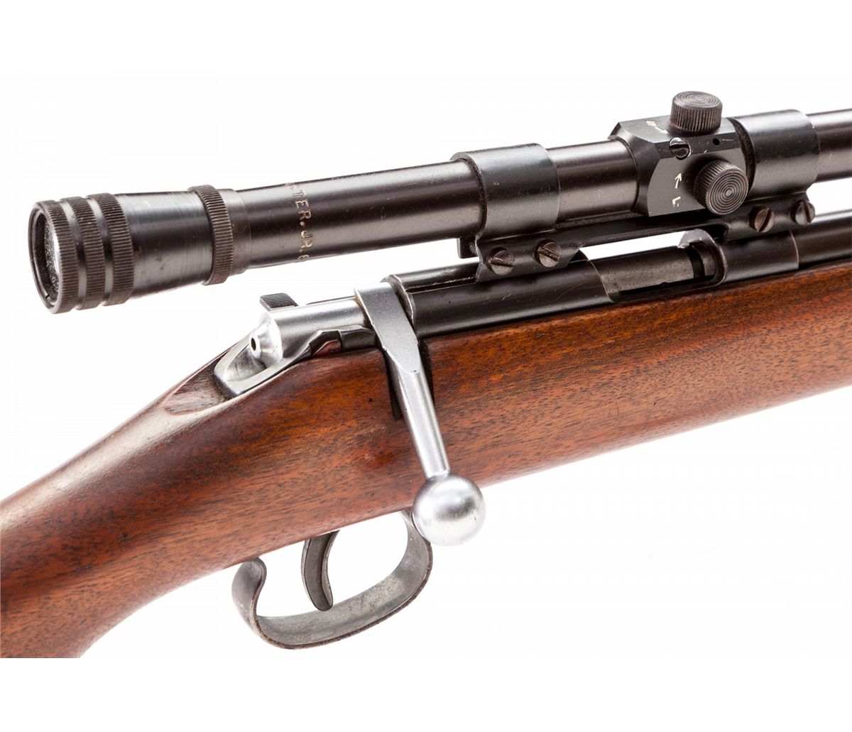 Colt Colteer Bolt Action Rifle, NVSN, .22 mag. cal., 21-1/2'' barrel, blue finish, walnut stock with factory sling swivels, and Coltmaster Jr. 6X scope. Condition is very good. Barrel has thinned and toned to approx. 90% blue; 97% to receiver and scope tube. Stock with only minor scuffs from handling. Action is good, bore is fine, scope optics show only vertical line. Est.: $400-$600. (C&R)