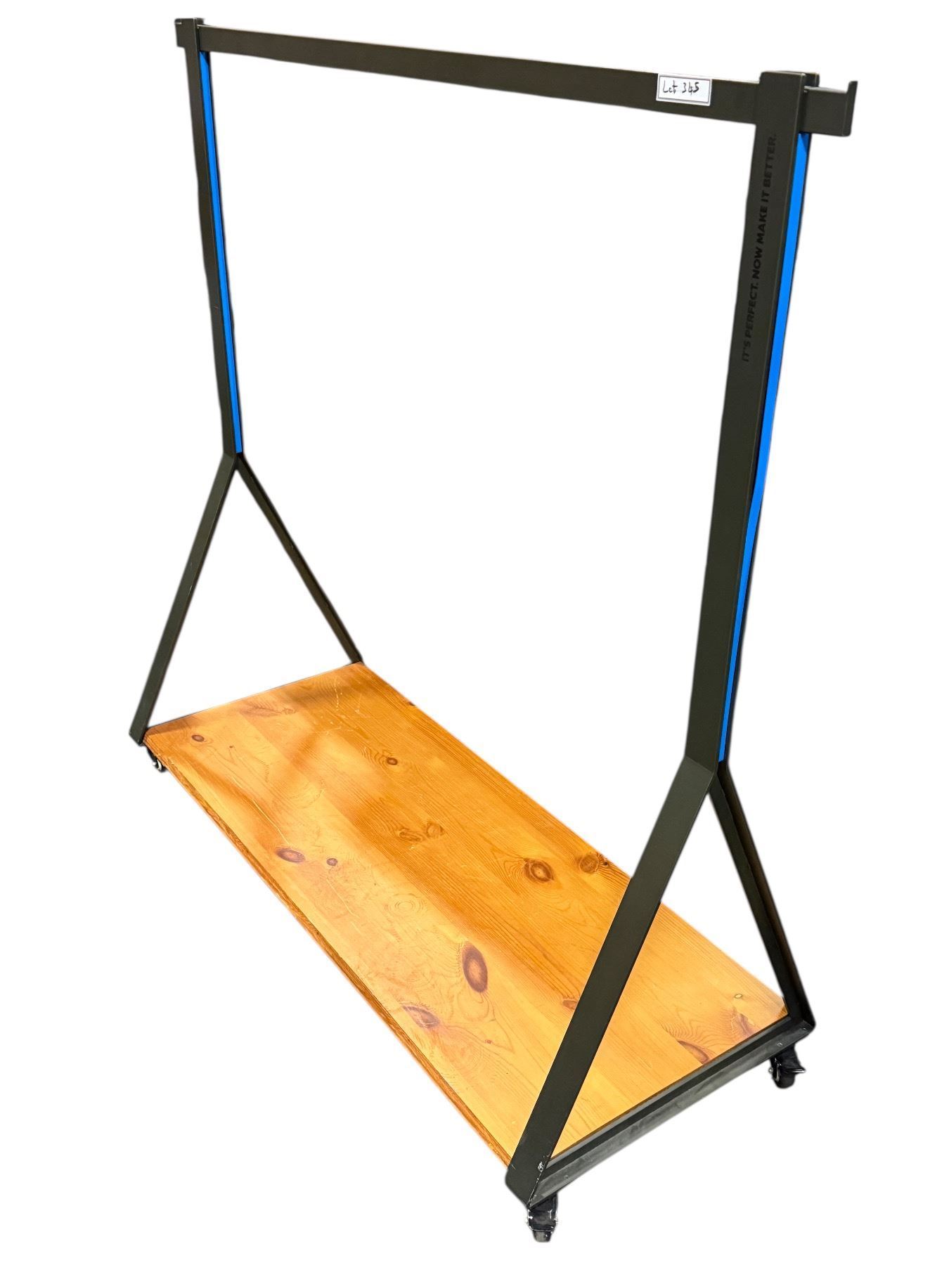 Commercial heavy duty rolling clothing rack w/ wooden base - approx 57" Long (From Hudson's Bay)