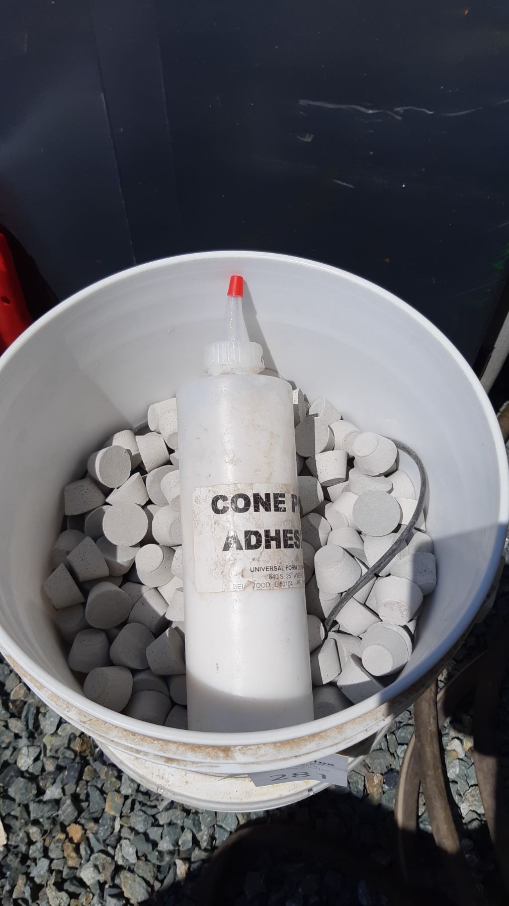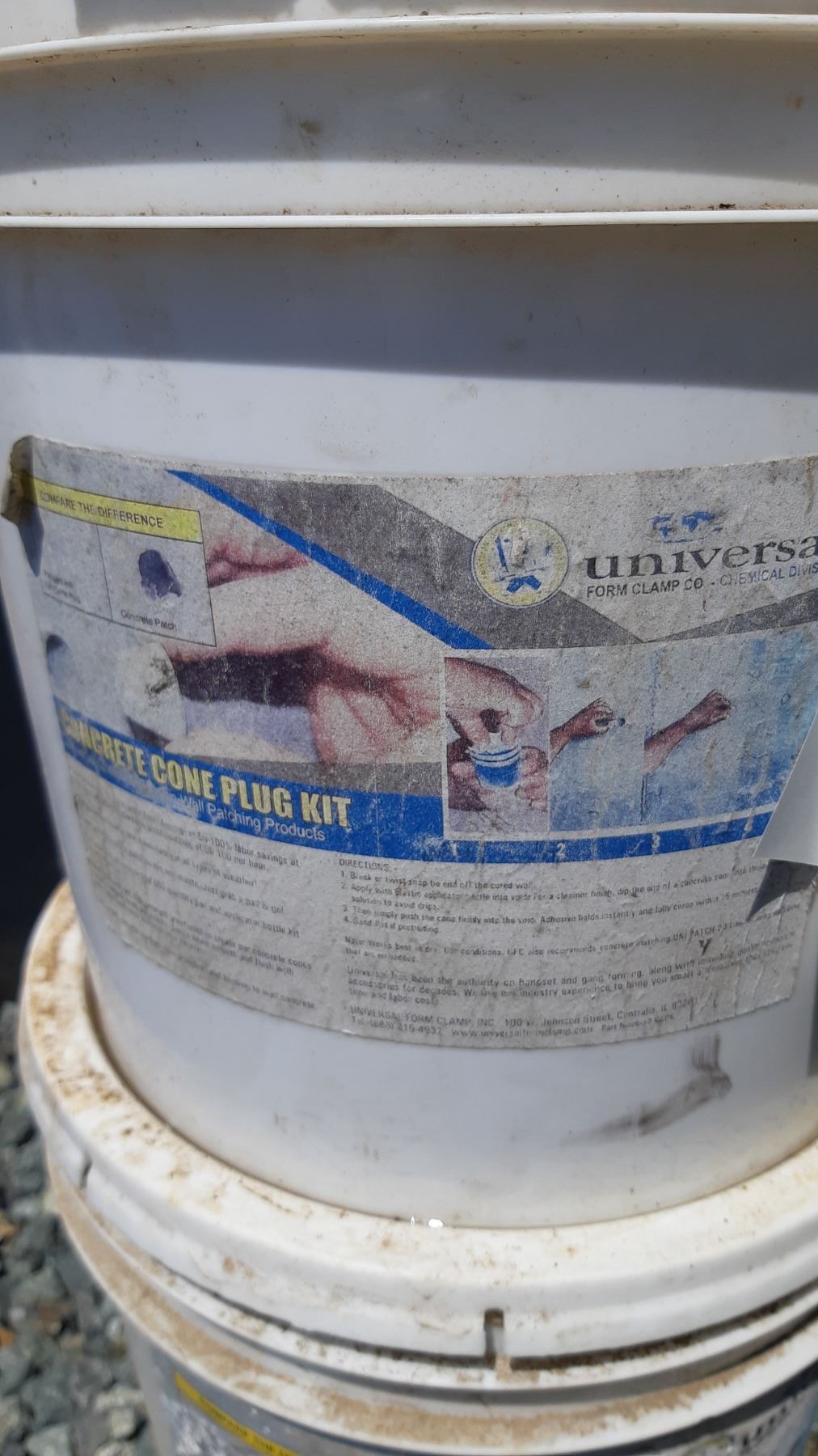 2 pails of concrete cone plug kits. Pickup at 11 am