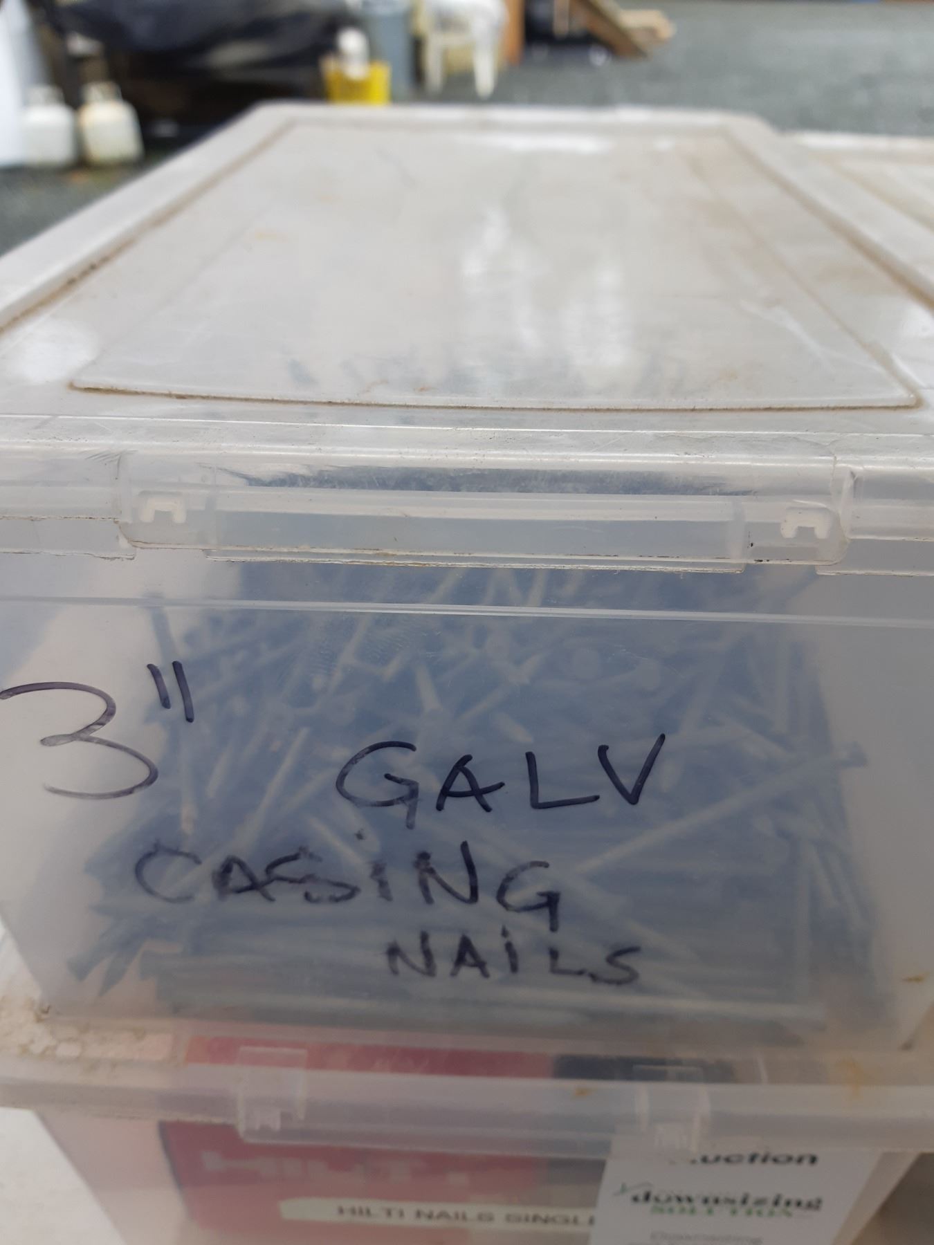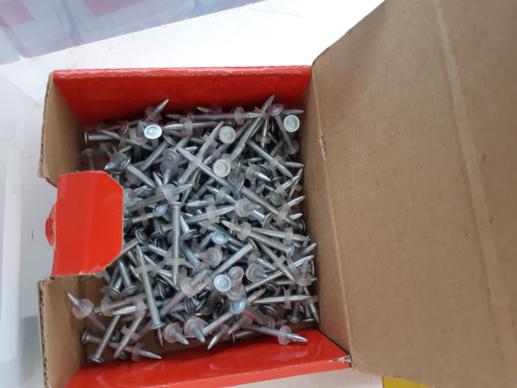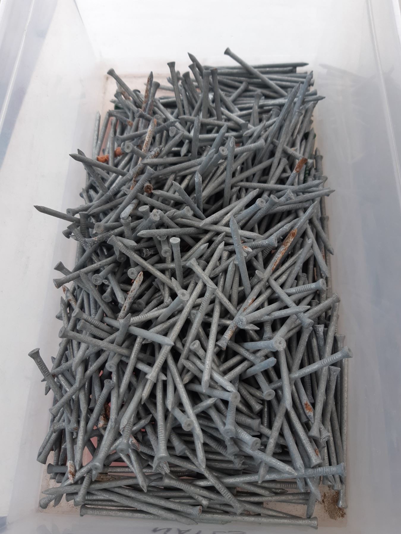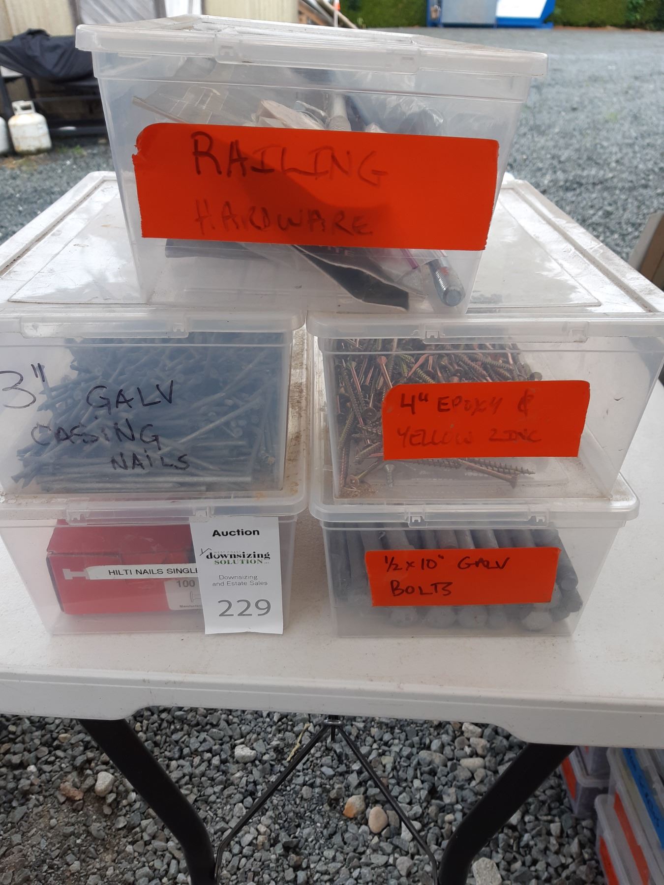 Five bins of nails, bolts and more. See pictures. Unchecked for completeness.