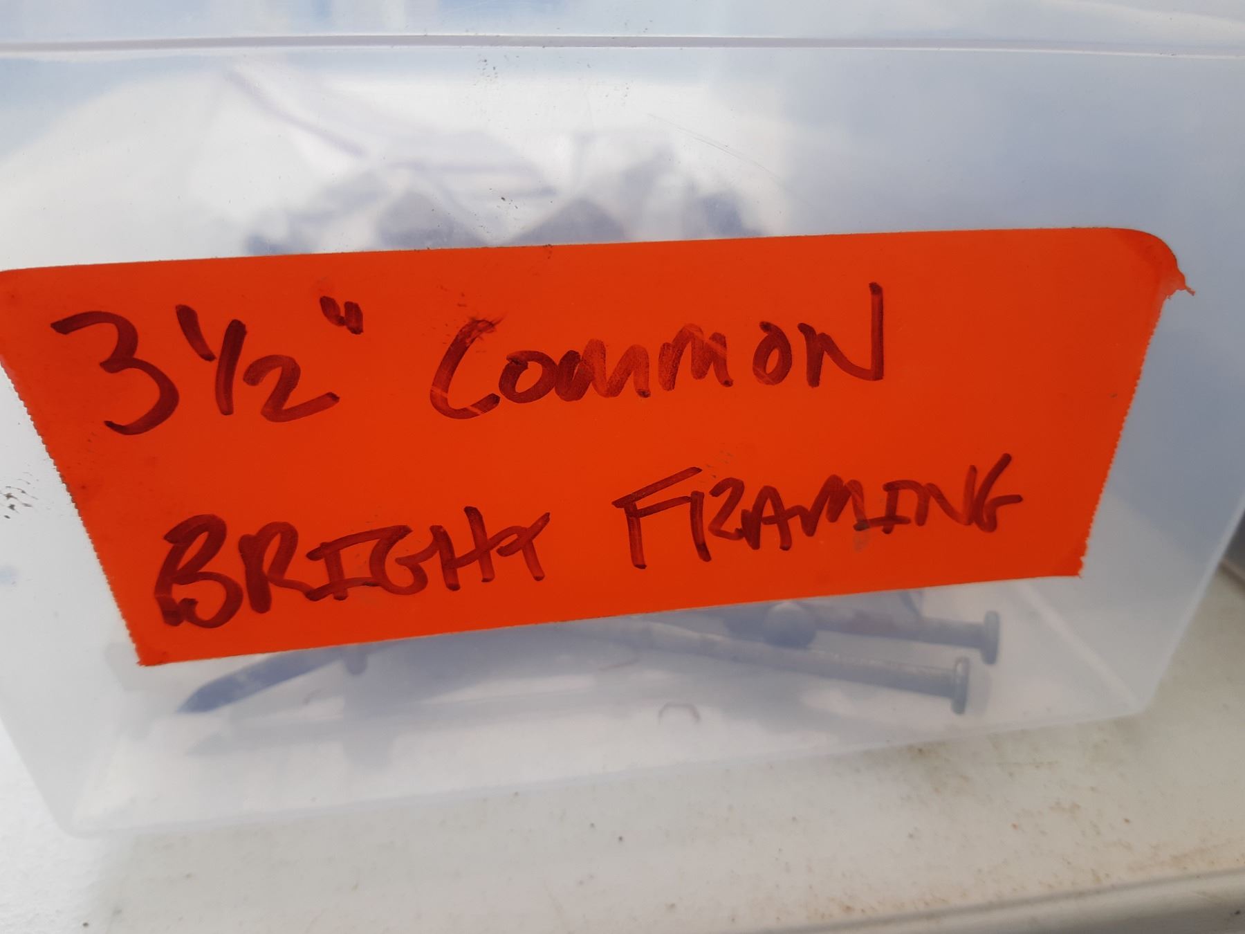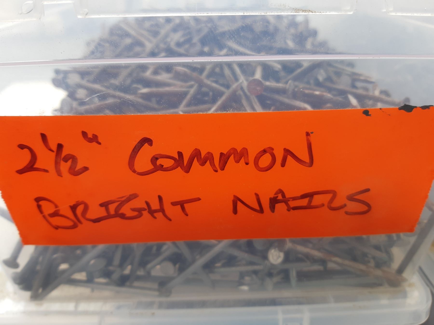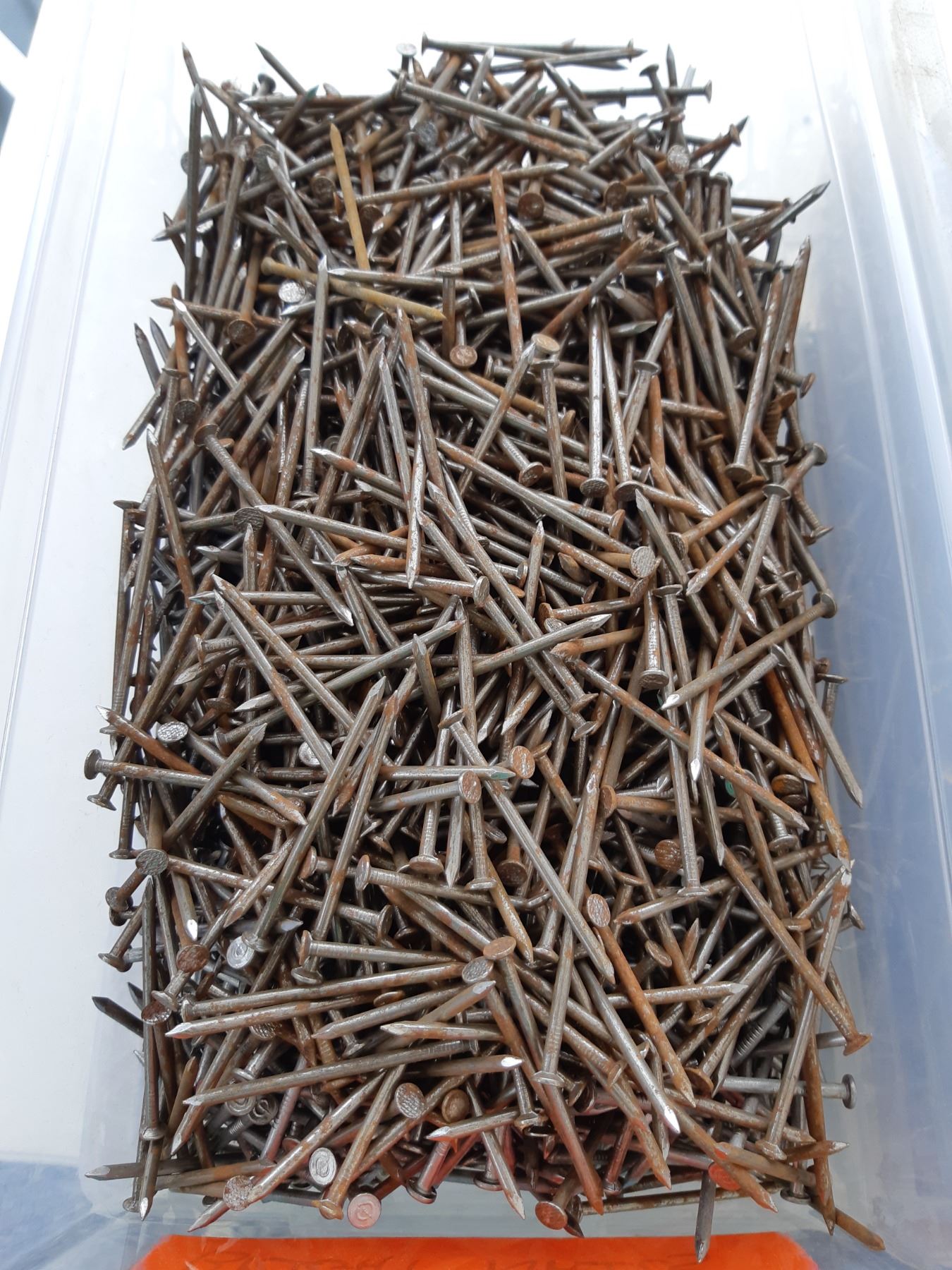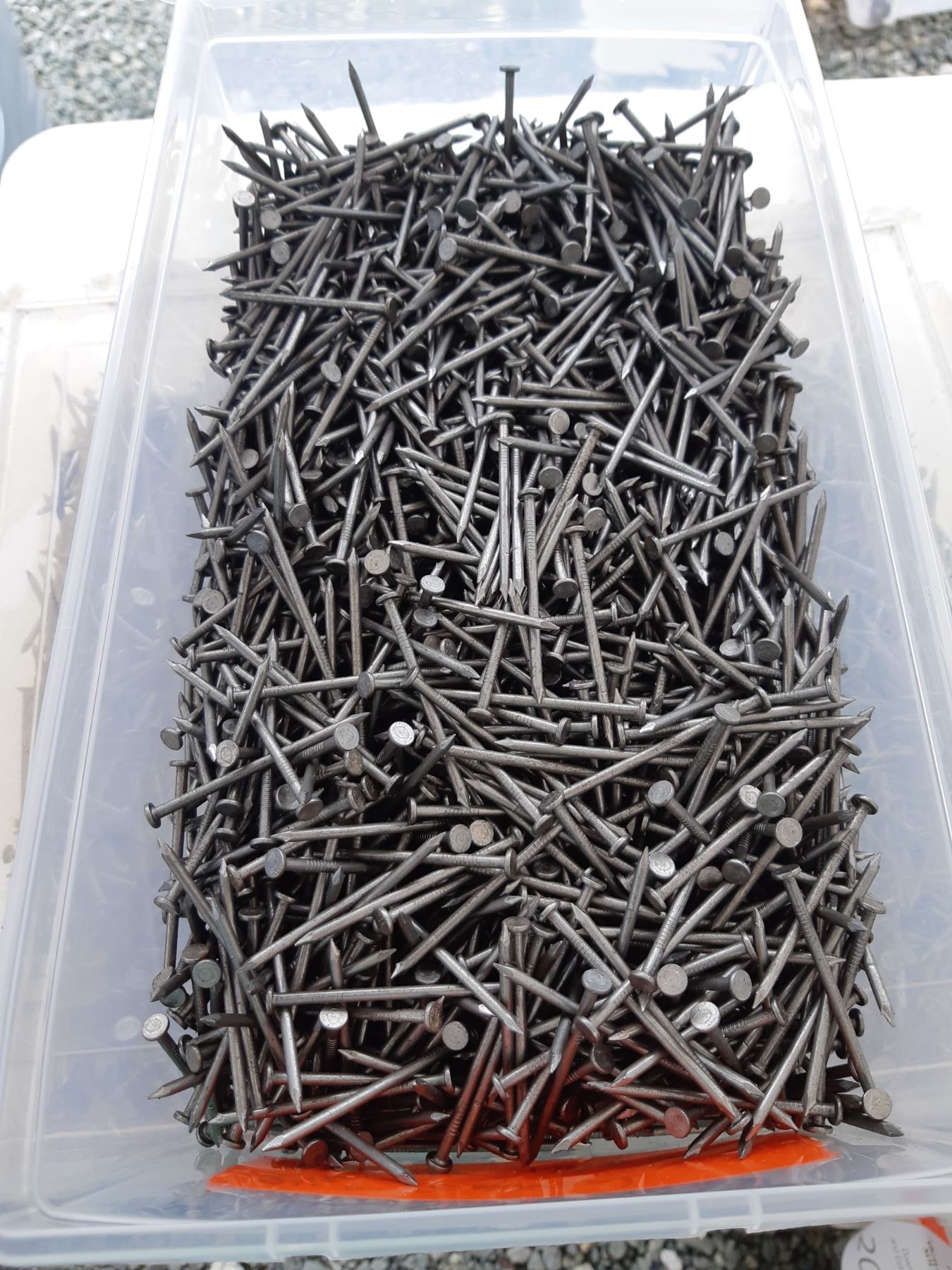 Five bins of nails, various sizes. See pictures. Unchecked for completeness.