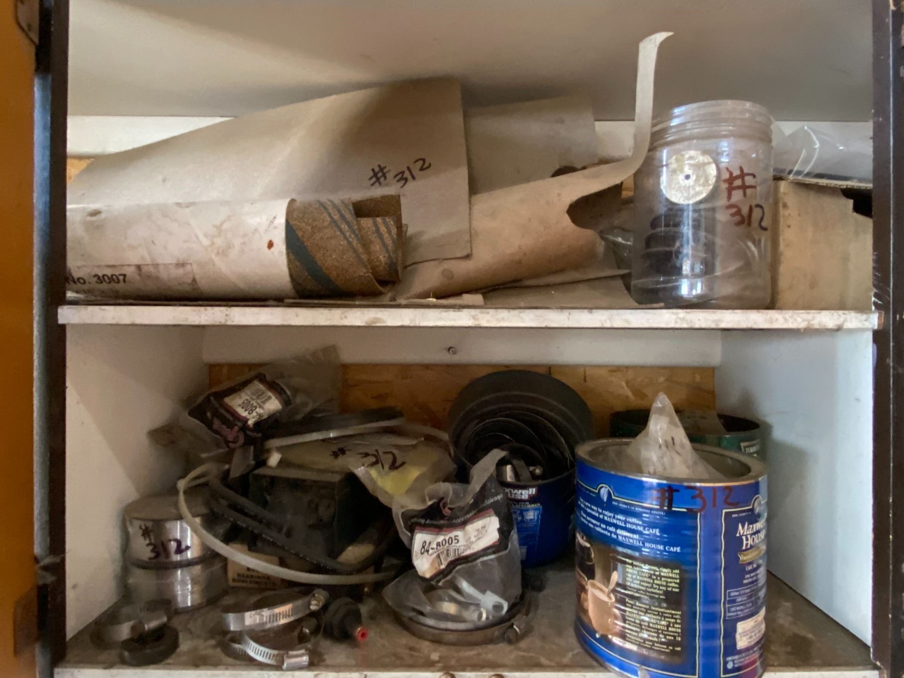 Contents of Top Shelf - Filters, Clamps & Misc.