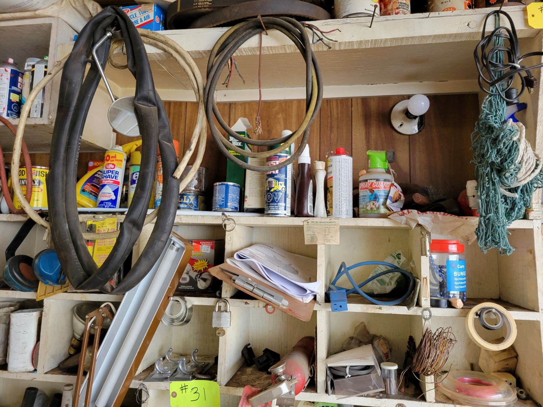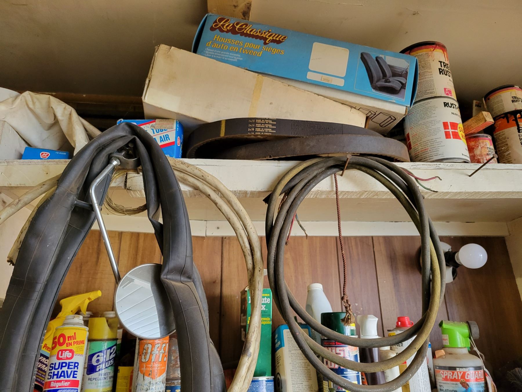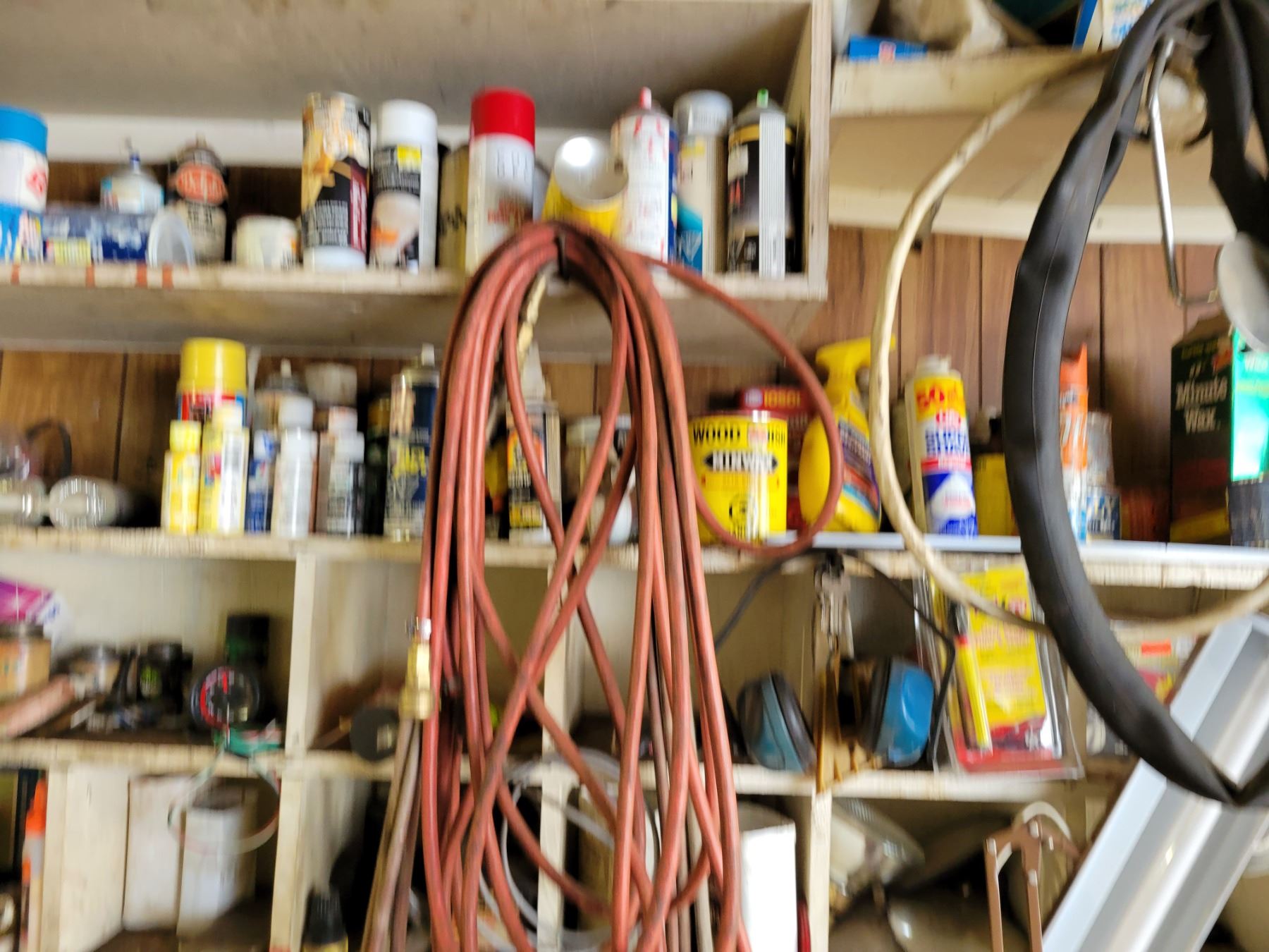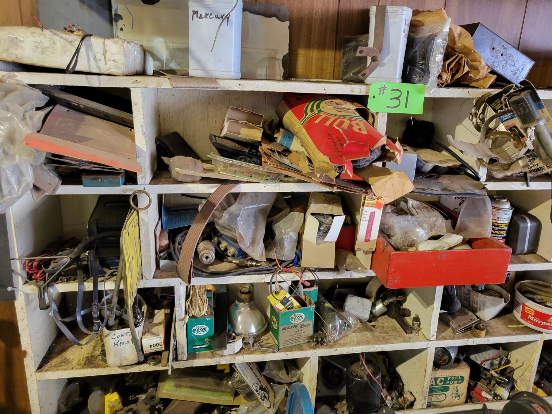 Contents on shelf; qty of paints, coatings, cleaners, glue, misc. small parts, gauges, propane, springs, plugs, grease guns etc. (Bring your own help to load & bring totes boxes or pails)