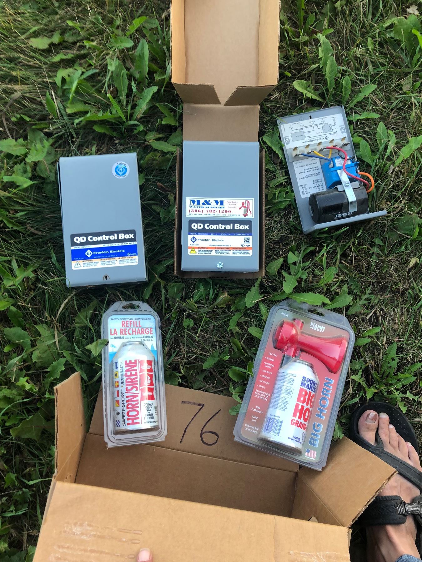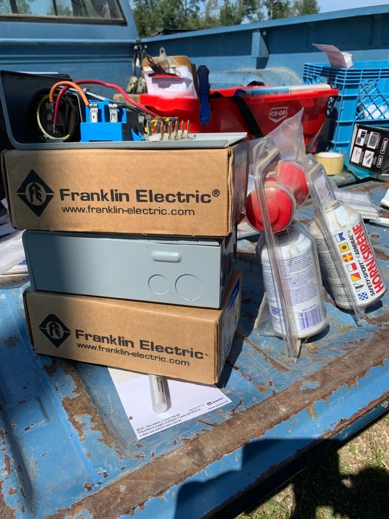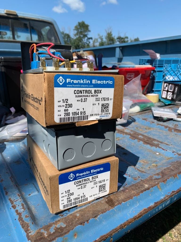 3- Franklin Electric 1/2 hp 230 volt control boxes, Big Horn marine and refill - new in case